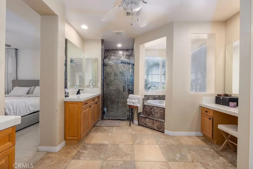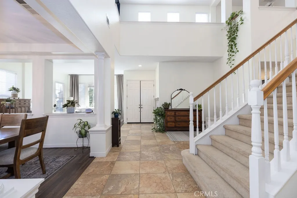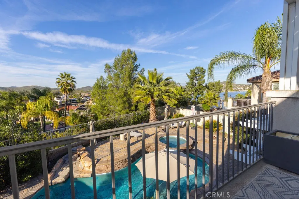 POOL | SPA | PAID-OFF SOLAR |WHOLE HOUSE FAN | MAIN LEVEL BEDROOM | CANYON LAKE VIEWS | CUL-DE-SAC This Stunning pool home is located on a cul-de-sac in the highly desirable Tuscany Hills community with panoramic hill and Canyon Lake views and no rear neighbors. This spacious 5-bedroom, 5-bath home offers 4,021 sq ft with a 3-car tandem garage on an 8,276 sq ft lot. Energy-efficient upgrades include paid-off solar, dual A/C units, a tankless water heater, and a whole-house fan. The backyard is an entertainer’s dream with a saltwater pool, spa, waterfall, and fire pits—perfect for enjoying sunset views. Inside features cathedral ceilings, two gas fireplaces, and a gourmet kitchen ideal for entertaining. The flexible floor plan includes a main-level primary bedroom or private in-law suite with a full bath. Upstairs offers a loft, Jack & Jill bath, 4 additional Bedrooms, and a Home Theater with a Projector. The Primary suite includes a Private balcony, walk-in closets, a jetted tub, a walk-in shower, and dual vanities. Residents enjoy resort-style HOA amenities including pools, spa, clubhouse, tennis courts, parks, and playgrounds, just minutes from Tuscany Hills Elementary and about 20 minutes to Temecula Valley Wine Country.