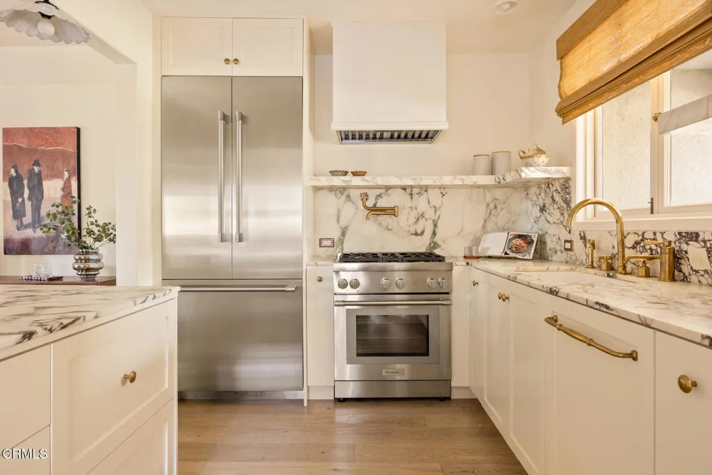Nestled on a walkable, tree-lined street south of Washington Blvd in one of Pasadena's most desirable neighborhoods, this 1927 French Revival cottage has been meticulously remodeled into a designer retreat with a versatile two-bedroom plus den/office layout. In addition to the main home there is a 334 sq ft ADU. A classic floor plan anchors the interior, with arched doorways connecting the formal living and dining rooms to a custom-made chef's kitchen appointed with Calacatta marble countertops, Thermador appliances and a built-in breakfast nook. Original plaster and lathe walls create a warm, romantic atmosphere, while curated lighting adds modern elegance. Farrow & Ball hues throughout the home brings a soft, layered finish that complements the home's timeless architecture. The thoughtful layout includes two spacious bedrooms and a den/office featuring Vitsoe shelving and a custom daybed, ideal for working from home, reading, or hosting quick stays. The primary suite offers a spa-inspired bath with marble-clad shower, Waterworks fixtures including a cast iron claw foot tub, and a custom-built closet. The second bedroom is generously sized, comfortably accommodating two twin beds. A 334 sq ft fully outfitted ADU echoes the main house with exposed beams, its own kitchen with Waterworks fixtures, Bertazonni appliances, LG stacked laundry and a bath, opening possibilities for an independent guest suite, studio, or flexible living space. Outside, lush gardens with citrus and olive trees, raised beds, and a vine-draped pergola create a true backyard oasis perfect for relaxing or entertaining. With thoughtful upgrades throughout, including copper plumbing, Rachio irrigation, and EV-ready outlets, all completed with permits, this home has been featured in interior design advertising campaigns including a campaign by Amber Interiors, underscoring its status as a designer showcase confirming how luxury lives in the details.Casa Grande offers unmatched convenience and culture. The home is near Victory Park and the Saturday Pasadena Farmers Market, close to Washington Boulevard's cafes, boutiques and restaurants, and only minutes from the world renowned Huntington Library and Botanical Gardens, and Caltech, with easy access to the 210 freeway and Metro, this charming property seamlessly blends luxury living with Pasadena's most desirable lifestyle amenities.