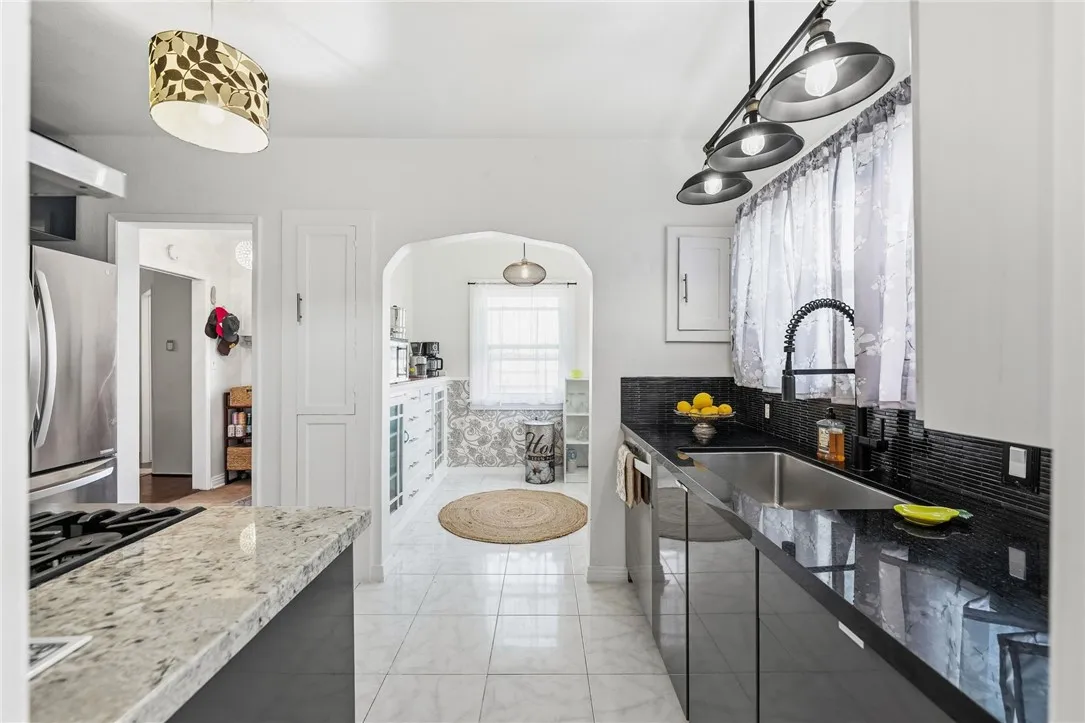 The remodeled kitchen and breakfast nook is beautifully appointed with granite countertops, new cabinetry, a modern backsplash, new lighting and upgraded quality appliances including a Viking range, LG refrigerator, and Kenmore dishwasher. The bathrooms have been thoughtfully updated, including a spa-inspired bathroom designed for relaxation.