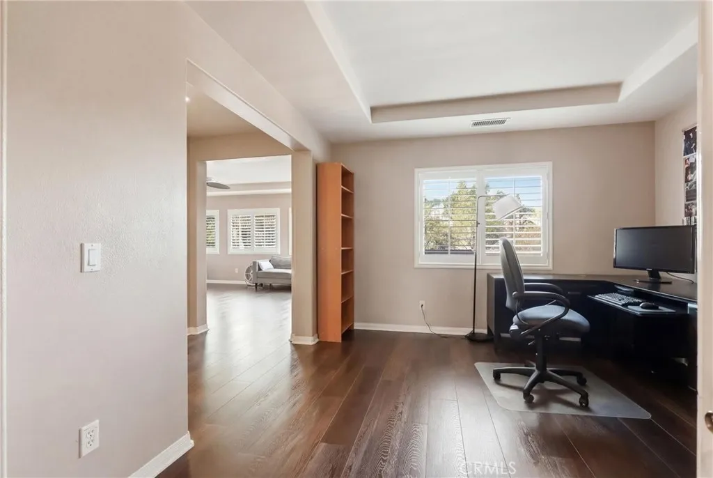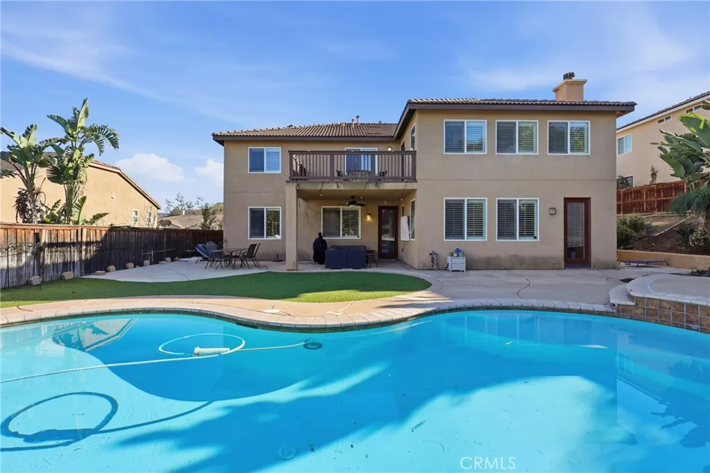 Dream retreat in the prestigious Montecito Ranch community — a stunning estate POOL HOME nestled at the base of the majestic Cleveland National Forest, offering privacy, luxury, and breathtaking mountain views w/ NO REAR NEIGHBOR! Situated on an expansive 10,000 SQFT lot with room for additional Parking, this remarkable residence boasts 5 bedrooms, 4 bathrooms, and 3,629 SQFT of refined living space PLUS a BONUS ROOM — perfectly designed for both grand entertaining and comfortable everyday living. Screen your favorite movie in the private home theatre! The curb appeal captivates w/ a gorgeous front door, welcoming front porch, shutters, and manicured presentation. Inside, soaring ceilings, recessed lighting, a cool modern paint palette, panel doors, dual-zone air conditioning, and a whole house fan create an elevated yet inviting atmosphere. New engineered wood laminate flooring flows seamlessly throughout the home. The heart of the home is the expansive chef’s kitchen, featuring an oversized island, granite countertops, abundant cabinetry, butler’s pantry, and stainless-steel appliances. The kitchen opens to an incredibly spacious family room adorned w/ a fireplace, elegant stone accents, built-in entertainment center/bar — ideal for hosting unforgettable gatherings. Did we mention a BONUS ROOM? Enjoy both formal and casual dining spaces, a second living room, and thoughtfully designed open-concept flow. Upstairs, the absolutely HUGE primary suite is truly a retreat unto itself — complete with an oversized private living/sitting/office space, trace ceilings, a private balcony perfect for morning coffee with endless mountain views. A spa-inspired bath featuring a soaking tub, oversized separate shower, and generous walk-in closet. Two substantial secondary bedrooms share a Jack-and-Jill bathroom, while another has its own private bath — ideal for guests or multigenerational living. An upstairs laundry room adds everyday convenience. Step outside to your entertainer’s playground — a resort-style backyard showcasing a sparkling pool and spa, covered outdoor kitchen, covered patio, stamped concrete, artificial grass, and ultimate privacy with scenic natural surroundings. Solar panels and a 240V EV charger offer enhanced efficiency and sustainability. Located just minutes from Glen Ivy Golf Club and the world-renowned Glen Ivy Hot Springs, and close to sought-after award-winning schools, this home delivers the perfect blend of luxury, lifestyle, and location!