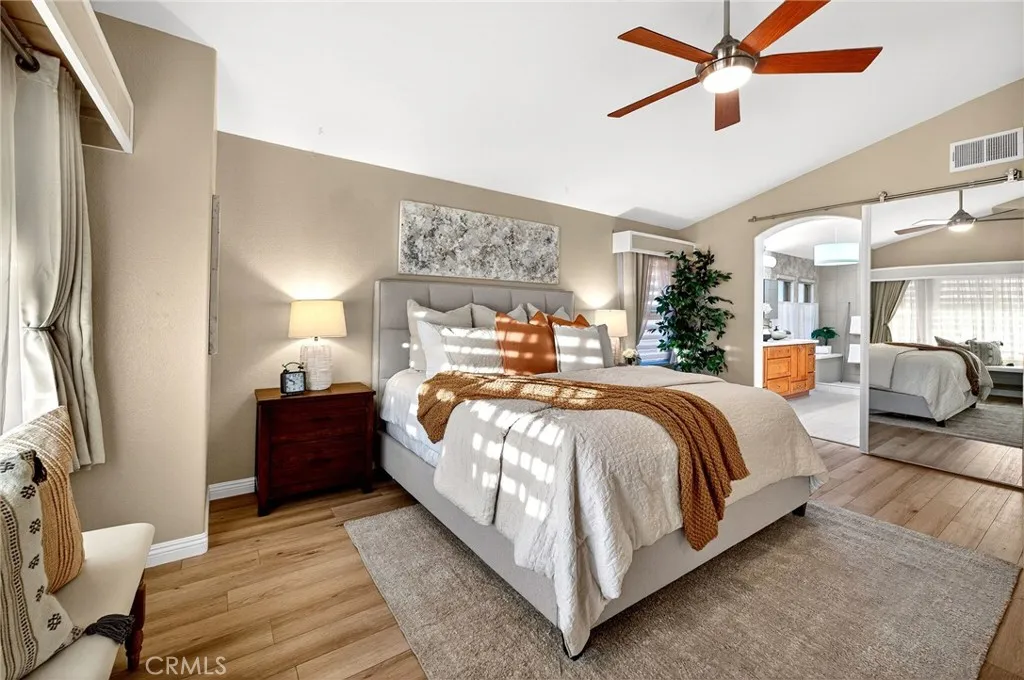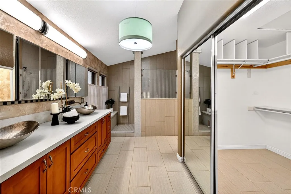 Upstairs includes spacious secondary bedrooms and 2 tastefully remodeled bathrooms. The generous primary suite offers vaulted ceilings, two oversized closets and a remodeled bathroom complete with dual sinks, barn door entry and oversized walk-in shower, and two separate shower heads.