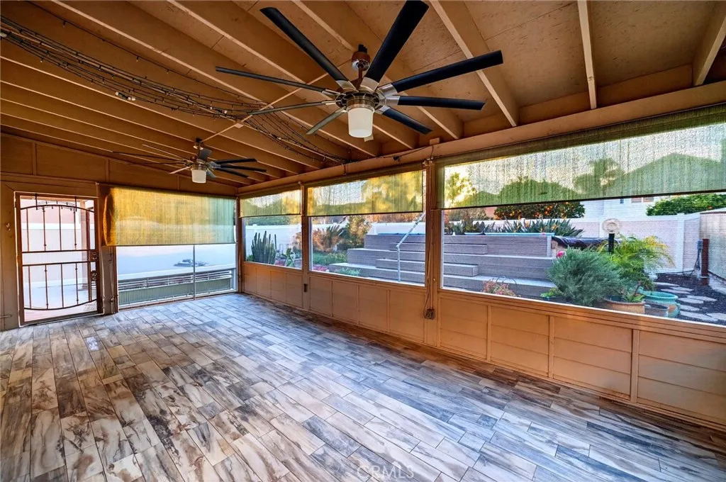 The private backyard showcases custom stone pathways, raised planters, mature landscaping, a screened-in sunroom, above-ground pool with custom decking, and an elevated deck with neighborhood and hillside views. Additional highlights include a 3-car garage, tons of storage, oversized laundry room with built in cabinets and sink, whole house fan, and continuous rain gutters — a valuable and often overlooked upgrade.