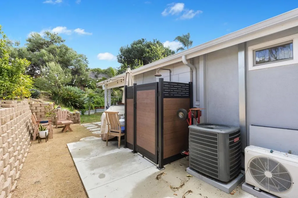 Start living the Encinitas lifestyle in this tastefully redesigned twinhome located in the peaceful community of Pacific Serena with no HOA. Ideally situated within walking distance to Encinitas Ranch trails, just 1 mile to I-5, and only 2 miles to Moonlight Beach. 271 Coneflower Street has been extensively upgraded, showing pride of ownership throughout. In 2023, a 231 sq ft primary suite addition transformed the original 2BR/1BA footprint into a functional and spacious 2-bedroom, 2-bath 1,058 sq ft home. The vaulted ceilings elevate the space, while the beautifully designed primary bathroom features a custom dual vanity, a walk-in tiled shower, and a private enclosed toilet. French doors off the primary suite open to an additional 240 sq ft vaulted covered patio with built-in heaters and a ceiling fan, creating a seamless indoor-outdoor experience and an exceptional space for year-round entertaining. Additional upgrades complement the expansion, including a remodeled kitchen with new cabinetry, center island, and appliances, an owned solar system with battery (installed 2025); a complete garage renovation with a new garage door, added insulation + drywall, vaulted ceilings, recessed lighting, epoxy floors, custom storage cabinets, and its own mini-split system. The home also features new LVP flooring, recessed lighting, Milgard windows, a new fence and retaining wall on the north side maximizing the corner lot space, 2 storage sheds, a tankless water heater, a whole-house soft water system, an outdoor shower, and central HVAC. Turnkey coastal living in a prime Encinitas location