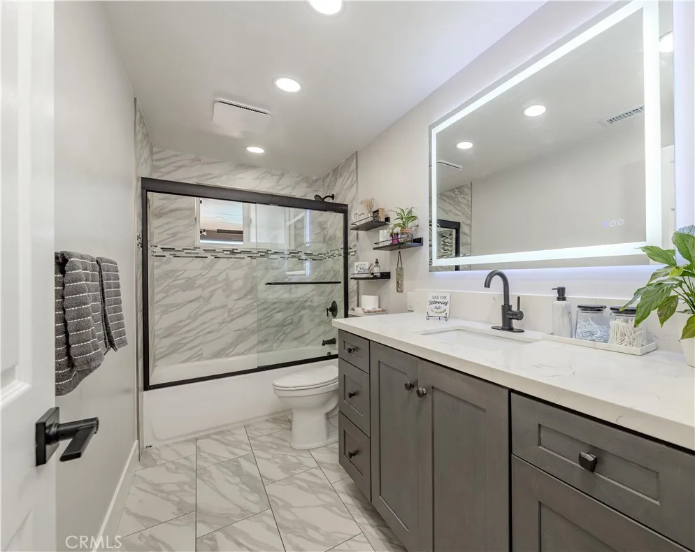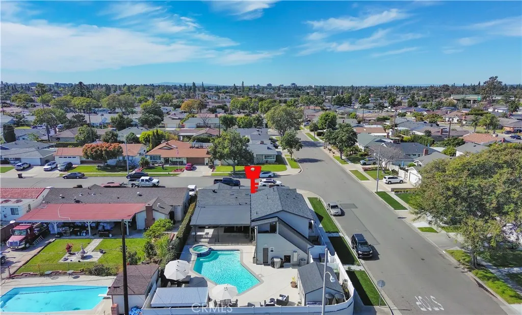 This remarkable property offers an exceptional opportunity for multi-generational living or savvy investors. Use the $4,700 of ADU income to offset your mortgage payment. Nestled in a desirable neighborhood, it features a charming single-family home, complete with an Accessory Dwelling Unit (ADU) and a Junior Accessory Dwelling Unit (JADU). As you step inside the main house, you’ll be welcomed by an expansive open-concept layout, filled with modern finishes and bathed in natural light. The kitchen is a culinary enthusiast’s delight, boasting generous counter space, ample cabinetry, and a large peninsula that serves as a breakfast bar for casual dining. The primary suite is a luxurious retreat, featuring a meticulously remodeled bathroom that includes a dual sink vanity and an indulgent walk-in shower for a spa-like experience. The main house also offers three additional bedrooms and a beautifully remodeled bathroom, providing ample space for family and guests. The JADU unit downstairs is a charming one-bedroom, one-bathroom oasis, complete with a full kitchen, a cozy living area, a convenient washer and dryer, and its own private 8x22 patio. The second ADU unit offers another inviting one-bedroom, one-bathroom space. Both units are designed with contemporary elegance, featuring striking white kitchen cabinets, quartz countertops, and luxurious vinyl plank flooring. Each unit benefits from its own private entrance and separate utility meters, ensuring privacy and independence for every occupant. The outdoor amenities are equally impressive, featuring a sprawling swimming pool and spa, alongside a covered patio ideal for memorable gatherings. There's plenty of room for all your outdoor essentials with the two storage sheds measuring 16x2 and 6x15.5. The backyard patio is conveniently plumbed and set up for an outdoor BBQ and sink island, making it the perfect spot for gatherings. An additional outdoor bathroom adds convenience for entertaining. Whether lounging by the pool or hosting lively gatherings, the backyard is undoubtedly a highlight of this exceptional property. A whole-house water softener ensures comfort. This home is conveniently situated just minutes away from Disneyland and a wealth of popular shopping and dining venues, offering unparalleled access to some of Orange County’s most coveted amenities. Whether you reside in one unit while leasing out the others or are in search of a high-potential investment property, this rare gem is a must-see!