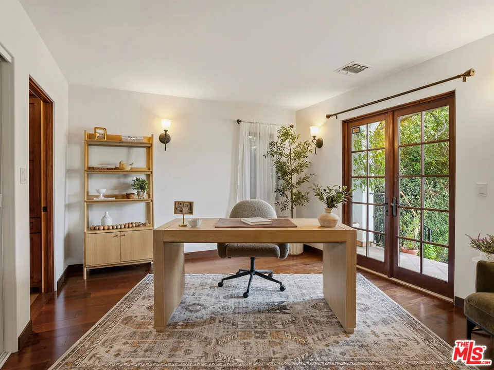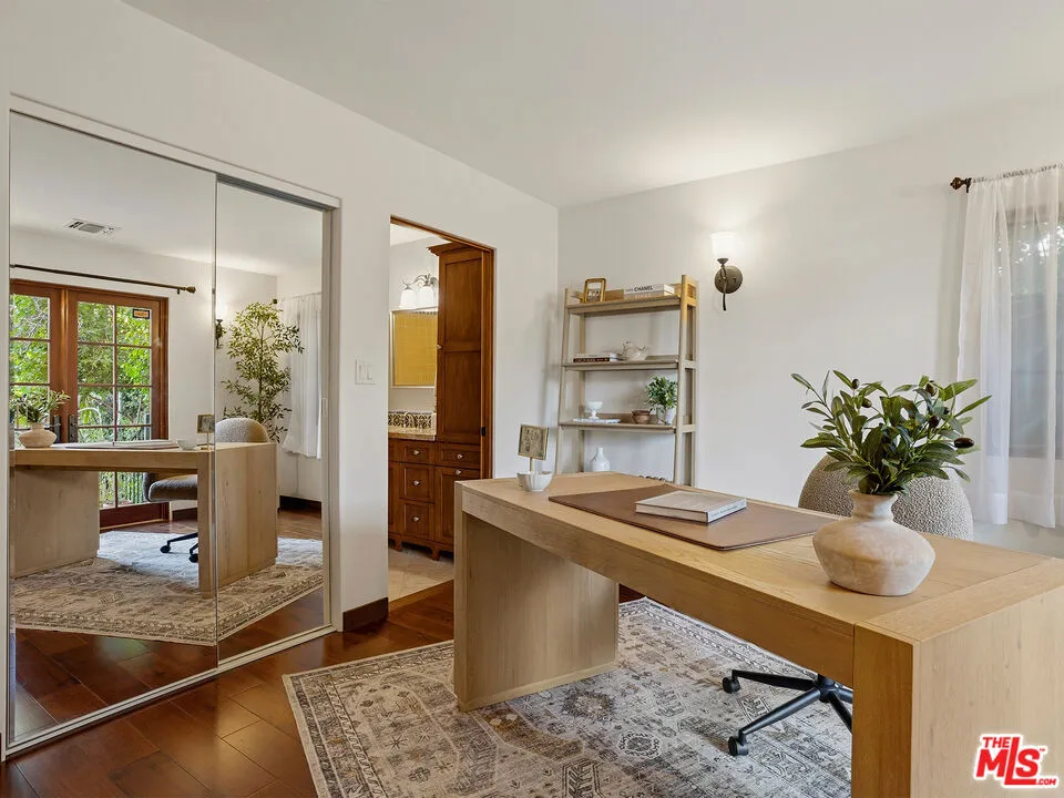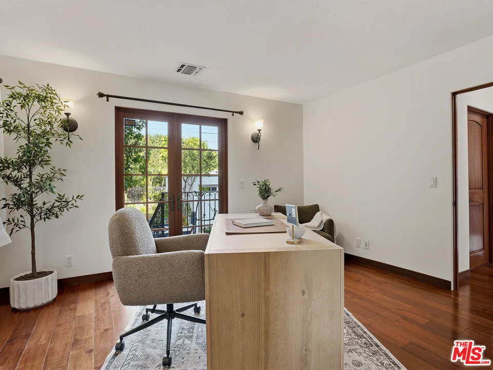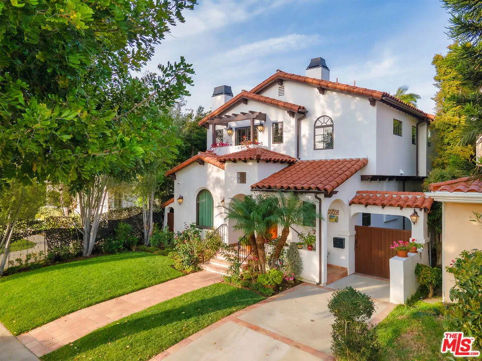 This picture-perfect Spanish Revival home blends timeless character with thoughtful modern upgrades. Fully remodeled in 2011, it welcomes you with Acacia wood floors, a marble tiled entry, mahogany doors, and wood trimmed windows that set an elegant old-world tone. The living room preserves its original 1930s charm with exposed wood beams and a woodburning fireplace framed by authentic Batchelder tiles. Each of the four bedrooms include their own ensuite full bathrooms and French doors opening to private balconies. The generously sized primary suite features a gas fireplace, trellised balcony, and a large walk-in closet with custom cabinetry. Its spa-like marble bathroom offers a full-sized spa tub, towel warmer, and a TV niche for relaxing evenings. A downstairs bedroom provides an ideal space for guests or a home office. Modern comforts include dual HVAC systems, dual tankless water heaters, and an upstairs laundry room. The kitchen has just been updated, and the entire home has been freshly painted. Outside, the private backyard offers a Spanish tiled patio, a variety of fruit trees, and a newly remodeled garage. Centrally located with easy access to all of Los Angeles, Santa Monica, Century City, Beverly Hills, this home is a rare blend of character, comfort, and convenience. Property owners are licensed real estate professionals, listing broker part owner.