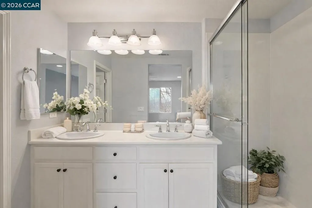 Welcome to your dream home, a beautifully maintained corner-unit condo offering comfort, style, and exceptional privacy in Livermore. This thoughtfully designed residence features two spacious primary-suite-style bedrooms, each with its own en-suite bathroom, providing comfort and convenience for all. You’ll also enjoy a versatile loft that can serve as a media room, playroom, or additional living space to suit your needs. In addition, a dedicated study area or work nook makes working from home both practical and comfortable. The open and bright main living area is filled with natural light, creating a warm and inviting atmosphere. The kitchen is perfect for everyday living and entertaining alike, featuring a large center island, granite countertops, stainless steel appliances, tile flooring, and a generous pantry. The kitchen seamlessly overlooks the dining and living areas, making gatherings with family and friends effortless. Interior photographs have been virtually staged for illustrative purposes only. Furniture and décor are digitally added and may not reflect the actual size or layout. Easy access to Highways 580 and 84, and a nearby BART station. Livermore offers award-winning wineries, great dining, shopping, and access to major tech hubs.