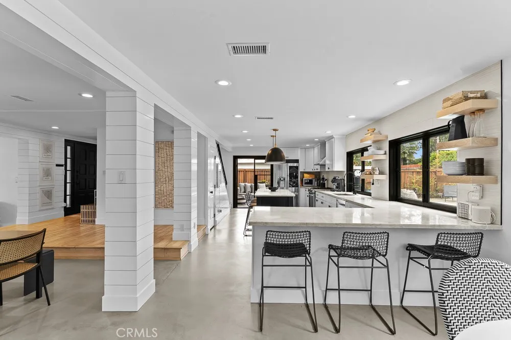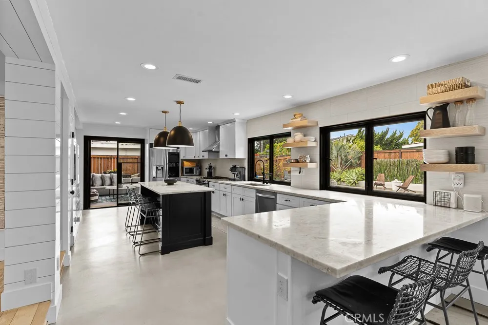 Imagine waking up to the ocean breeze in Huntington Beach’s premier coastal haven—this stunning, fully remodeled 2,749 sq ft gem on a 6,300 sq ft lot sits tucked away on a serene cul-de-sac, blending cozy elegance with luxurious resort vibes. Step inside to four generous bedrooms, three sleek baths, and a handy downstairs office perfect for your work-from-anywhere dreams. The heart of the home? A gourmet chef’s kitchen with a massive island, top-tier stainless appliances, marble counters, a walk-in pantry, and endless storage—ideal for whipping up family meals or hosting epic gatherings. Retreat to the lavish primary suite, complete with ample closets and a spa-like bath boasting a walk-in shower and indulgent soaking tub. The other bedrooms share a guest bath, making it easy to welcome guests or extended family. Outside, your private paradise awaits: dive into the shimmering saltwater pool, rinse off in the outdoor shower, or chill in the kitchen-adjacent entertainment zone with pass-through windows for effortless poolside fun. All of this, and did we mention this home has paid solar panels? Lush grass, mature fruit trees, and plenty of space to amp up the vacation-at-home feel. Just minutes from pristine beaches, upscale South Coast Plaza shopping, John Wayne Airport, freeways, and buzzing Downtown HB—this is coastal bliss redefined. Don’t miss your chance to own paradise!