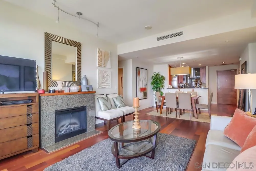 Enjoy stunning ocean views from the 12th floor of this beautiful condominium, where the fresh ocean breeze and sunny San Diego skies greet you from your private balcony. This thoughtfully designed unit features two spacious master suites, each positioned on opposite sides of the living room for added privacy. The living area is warm and welcoming, complete with a cozy fireplace and an open layout that flows seamlessly into the dining area and kitchen. The kitchen boasts sleek granite countertops, stainless steel appliances, and a convenient in-unit washer and dryer closet. Residents can take advantage of top-notch amenities, including a sparkling pool, relaxing sauna, fully equipped gym, and multiple lounge areas perfect for unwinding. The building also offers one dedicated parking space in the garage and professional concierge service for added comfort and convenience. This is coastal living at its finest!