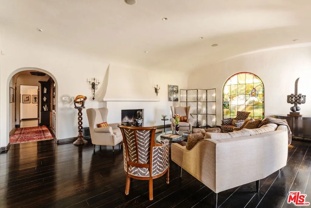 Situated on one of Hancock Park's most coveted tree-lined streets, 200 South Mansfield is a rare, renovated 1928 Spanish Colonial Revival that perfectly balances historic soul with a contemporary feel. While technically a condo, this designer-done residence lives like a single-family home, offering the high-end luxuries you actually want - including a built-in Miele espresso machine for your morning fix. The iconic turret entry and red-tiled roof set the stage for over 3,450 square feet of scale, marked by soaring ceilings, arched doorways, and warm hardwood floors. The formal living room, anchored by a working fireplace and a classic stained glass window, is made for hosting, while the large den with exposed wooden beams offers a more relaxed, moody vibe. The layout is a dream for the modern "live-work" lifestyle, featuring a dedicated office, a formal dining room, and a sun-drenched breakfast nook. The primary retreat is a total escape, complete with dual closets and a Juliet balcony overlooking the stone-rimmed pool. Outside, the gated lot is wrapped in tall hedges for total privacy, creating a hidden oasis in the heart of the city. You're just a short stroll from neighborhood favorites like Sycamore Kitchen, Republique, Sugarfish, and American Rag, and a quick drive to Larchmont Village. Located in the top-rated Third Street Elementary district, this is a rare chance to own a piece of architectural history in one of LA's most iconic pockets.