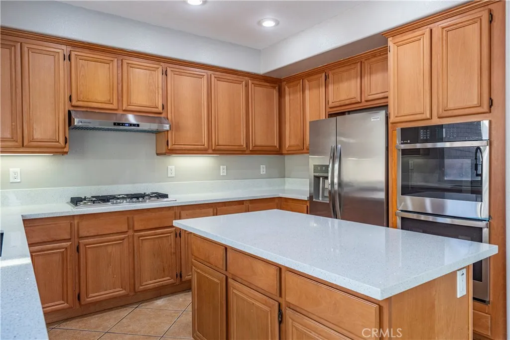 Welcome to this lovely 4-bedroom 2 1/2-bathroom home located in the Sierra Lakes community of Fontana, ideally positioned along the first green of the Sierra Lakes Golf Course, offering beautiful golf course views. Upon entry, you are welcomed by a formal living room and a separate area ideal for a formal dining space, offering flexibility for entertaining or everyday living. Toward the rear of the home, the family room features a cozy fireplace and opens seamlessly to the kitchen, creating a comfortable and connected space for gathering. The kitchen offers a nicely sized center island, new appliances including a double oven and ample room for cooking and hosting. A convenient main floor half bath is located just off the family room for guests. New wood-look vinyl flooring and tile flooring extend throughout both the main and second floors, complemented by fresh interior paint that gives the home a clean, modern feel. Upstairs, all bedrooms are thoughtfully situated along with a second-floor laundry room for added convenience. The primary suite enjoys the best views of the first green and features sliding glass doors that open to a private balcony, an ideal spot to enjoy your morning coffee or unwind in the evening. The attached primary bathroom includes double vanities, a large soaking tub, a separate shower, and a walk-in closet. A second-floor small loft space provides flexibility and works perfectly as a home office, homework area, or cozy play space. Ideally located near shopping and dining, including Costco, Lowe’s, Home Depot, and a variety of restaurants, and with easy access to the 210 Freeway, this home offers thoughtful updates, functional living space, and an excellent location within one of Fontana’s most desirable communities.