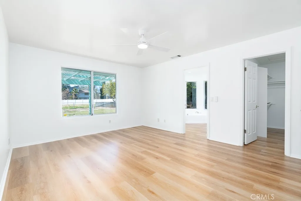 Welcome to this beautifully updated 3 Bedroom, 2 Bath Hemet home that perfectly blends comfort, convenience, and modern style. The light-filled open floor plan creates a seamless flow between the living, dining, and kitchen areas—ideal for everyday living and entertaining. There is even a bonus room, which can be used as an office or an extra bedroom if closet is added. Step outside to a backyard made for enjoyment, featuring a covered patio, and low-maintenance landscaping with fruit trees, flowers, and mature shrubs, all framed by stunning scenic views.