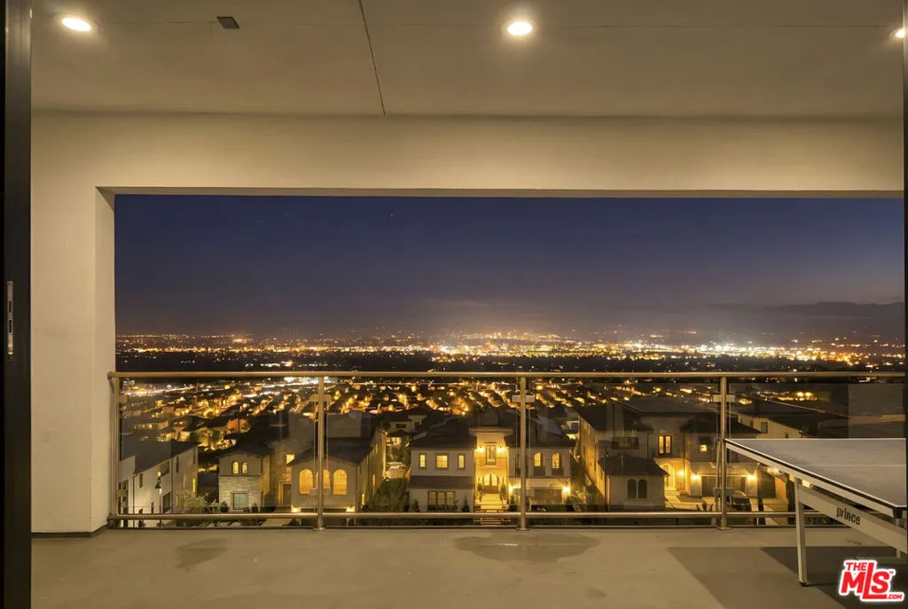 Situated in the prestigious guard-gated Westcliffe community of Porter Ranch Hills, this exceptional tri-level luxury estate offers a truly elevated living experience defined by sophistication, scale, and unforgettable views. Designed for both grand entertaining and everyday comfort, the home features a dramatic open-concept floor plan with soaring ceilings spanning all three levels and expansive stacking glass doors that seamlessly blend indoor and outdoor living. Enjoy breathtaking, full 360-degree unobstructed panoramic views of the city skyline, rolling hills, and surrounding mountains from nearly every vantage point. Refined finishes elevate the interiors, including premium flooring, custom cabinetry, designer lighting, and a show-stopping gourmet kitchen equipped with top-of-the-line appliances, an oversized island, and sleek quartz countertops ideal for both culinary creations and social gatherings. The luxurious primary suite is a private sanctuary, offering stunning vistas, a cozy patio with fireplace, and a spa-inspired bath designed for ultimate relaxation. Generously sized secondary bedrooms provide comfort and privacy, complemented by beautifully upgraded bathrooms throughout. Outdoors, the resort-style backyard invites you to unwind with a sparkling pool and spa set against a backdrop of endless views. The second-story loft creates the perfect cinematic lounge experience, while a dedicated gym and elegant office add functionality and balance. The expansive third level is an entertainer's dream, complete with its own private bathroom and stacking doors that open to a view balcony showcasing dazzling city lightsideal for unforgettable sunset gatherings. Owner-owned solar panels enhance energy efficiency and long-term savings. A rare opportunity to live one of the finest and most coveted view lots in all of Porter Ranch's most desirable communities