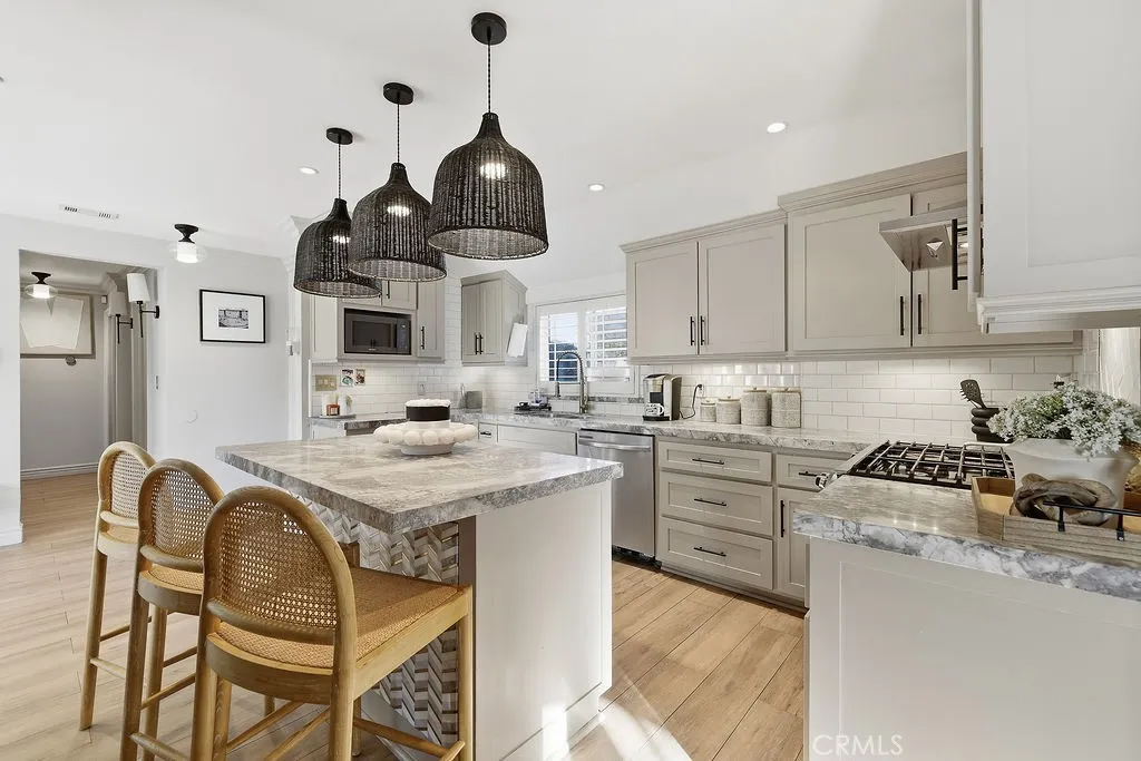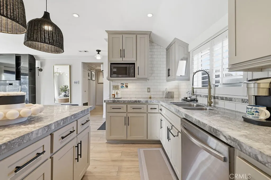Fall in love the moment you arrive at this beautifully reimagined Whittier residence, ideally located in one of the city’s most sought-after neighborhoods where modern living, convenience, and long-term value come together. This fully reconfigured, remodeled, and upgraded home showcases a thoughtfully designed open-concept floor plan with an effortless flow between the kitchen and living room—perfect for both entertaining and everyday comfort. The chef-inspired kitchen is the heart of the home, featuring elegant stone countertops, a spacious center island with seating, custom cabinetry, stylish pendant lighting, and ample prep space. Natural light pours in through double-pane windows and large sliding glass doors, highlighting the wide-plank flooring, recessed lighting, and designer finishes throughout the main living areas. The living room offers a warm, inviting atmosphere with seamless indoor-outdoor connectivity. Bedrooms are generously sized, and the remodeled bathrooms feature contemporary tile work, upgraded vanities, and modern fixtures. The home’s neutral color palette provides a timeless, move-in-ready appeal. Outside, enjoy an expansive backyard with endless possibilities—ideal for entertaining, play, gardening, or future improvements. The oversized lot offers ample space to build an ADU and/or expand the main home, making it a fantastic opportunity for multi-generational living or additional rental income (buyer to verify).