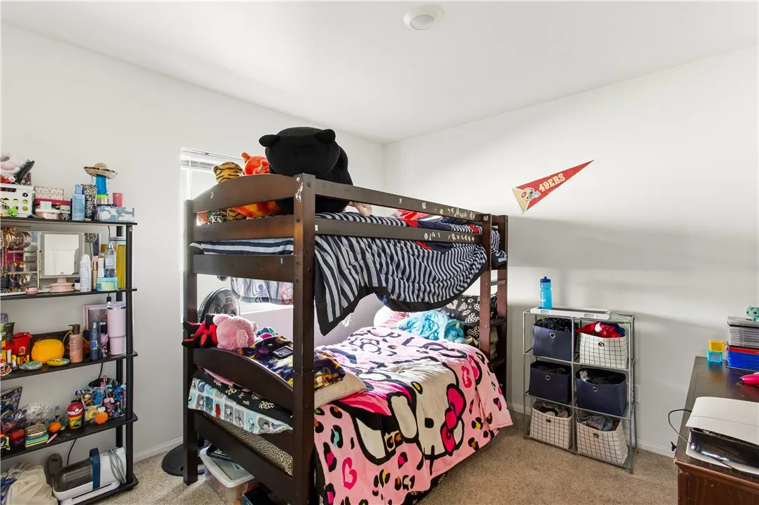 The spacious primary suite offers abundant natural light, recessed lighting, a walk-in closet, dual vanities, and a large walk-in shower. The three additional bedrooms are generously sized, and the shared bathroom includes dual sinks, ideal for family or guests.