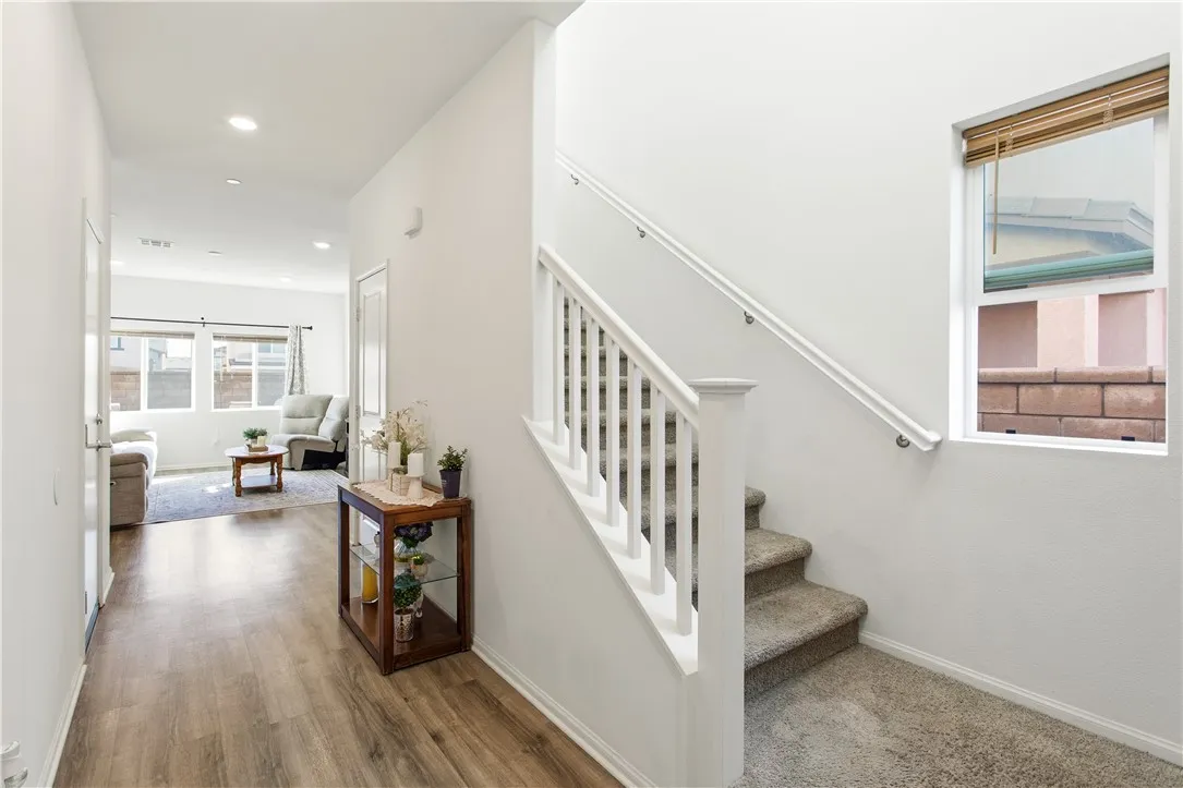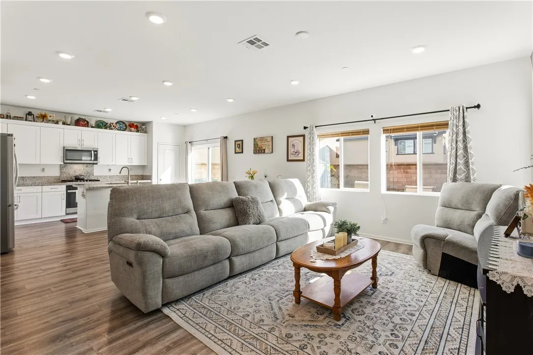 As you step inside, you’re welcomed by an open-concept floor plan that flows beautifully from the living room, dining area, and kitchen. It is perfect for both everyday living and entertaining. The first floor showcases laminate flooring, recessed lighting throughout, and a modern, inviting layout. Enjoy the California sunshine with an abundance of natural light throughout the home.