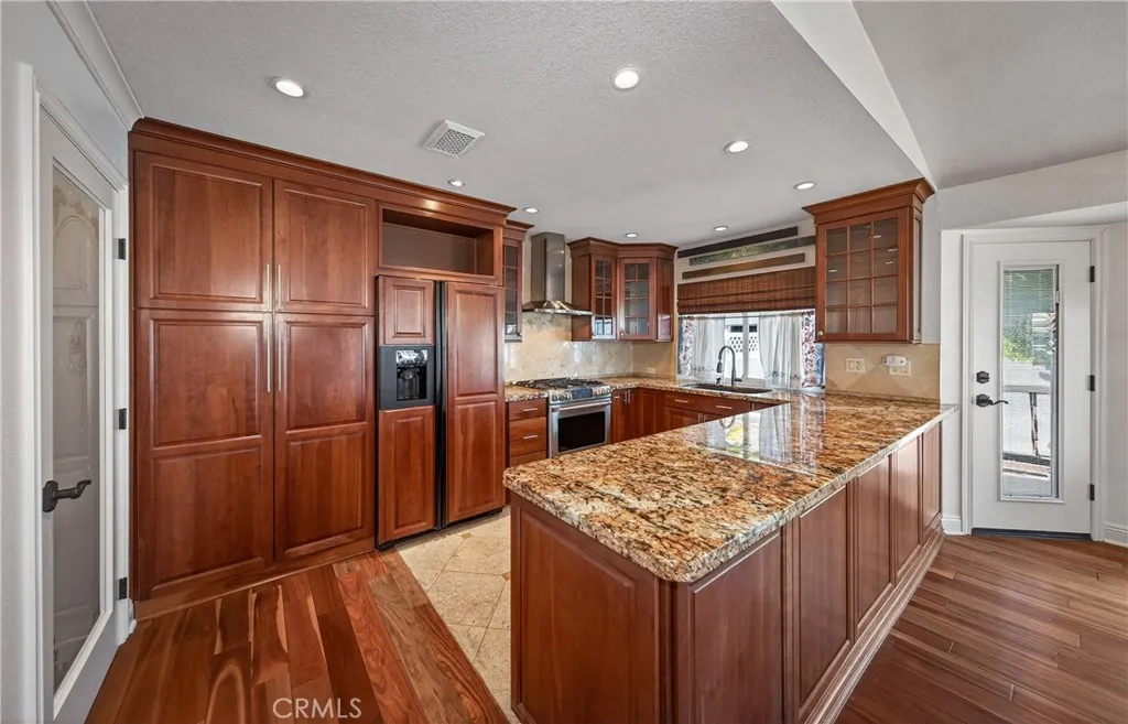 This beautifully updated 2-bedroom, 2-bathroom home in Brittany Place combines modern upgrades with timeless style. The spacious living room features a cozy linear gas fireplace with reflective glass, recessed lighting, and in-wall wiring for a mounted TV and speakers. The kitchen features granite countertops, Kraft Maid cabinets with rollout drawers and a Lazy Susan, a GE Café counter-depth refrigerator, stove, and dishwasher, a stainless vent system, tumbled marble flooring with accent pieces, and a Sharp microwave drawer. Soft-close hardware, a large single sink with in-counter soap dispenser, and a marble backsplash complete this stylish space. Bathrooms are upgraded with tumbled marble floors, custom wall tile, modern sinks, bronze-rubbed fixtures, updated cabinets with granite countertops, and updated commodes. The master bath has a custom glass shower with dual shower heads, while the guest bath includes a deep soaking tub. The bedrooms feature upgraded closets with shelving and rods, heavy-duty mirrored doors, custom blackout blinds, and TV pre-wiring in the guest bedroom. Throughout the home, enjoy engineered maple flooring, crown moldings, solid-core doors, custom vent covers, updated electrical outlets and switches, dimmable lighting, and dual-pane windows. Step outside to a private concreted patio with a custom planter, drip irrigation, aluminum patio cover, mood lighting, and beautifully landscaped succulents. The attached garage offers storage cabinets and an exterior keypad for convenience. Brittany Place offers a community pool and spa and is just minutes from LLU and the VA, walking distance to Starbucks, shopping areas, a park with tennis and dog areas, and the gateway to South Hills hiking trails. Don’t miss your chance to live in one of Loma Linda’s most desirable neighborhoods!