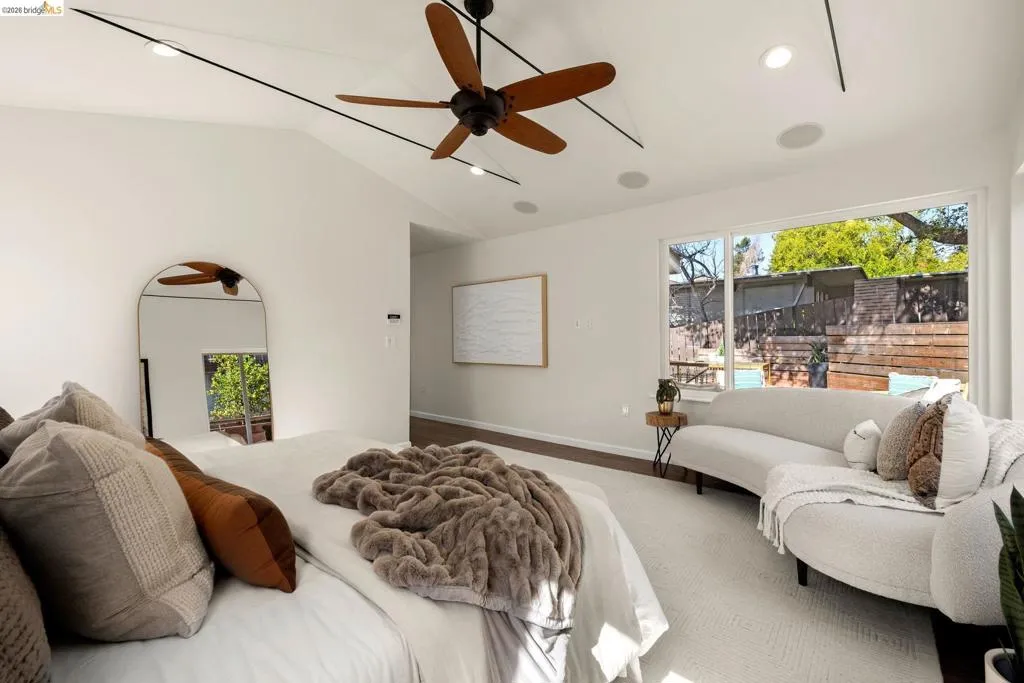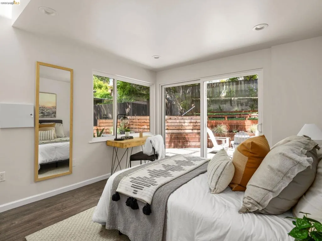 Welcome to 1471 Scenic Ave, a rare new construction in North Berkeley offering thoughtful design, exceptional light + ultimate flexibility. This beautifully appointed 3BD/2.5BA main home is paired w/ a fully equipped 1BD/1BA ADU—ideal for guests or a home office. Perched above a 3-car garage w/ additional storage, the main home features soaring ceilings, hardwood floors, skylights + abundant windows offering peek-a-boo Bay views. The open living space includes a electric fireplace, dining area w/ rattan chandelier, + a modern kitchen w/ white cabinetry, SS appliances incl. 6-burner range, central island + direct yard access. A central hallway leads to 3BDs + a full bath w/ walnut vanity + sleek finishes. One Bedroom opens to the patio, while the primary enjoys garden views + spa-like ensuite w/double sinks, skylit shower + water closet. A mature Oak shades the terraced garden plus a flat lawn—ideal for play + outdoor dining. The private ADU is separated by a tiled terrace + features its own entrance, full kitchen, bath, laundry, + sunny living space. Located moments from Shattuck Ave shops, cafés, UC Berkeley, BART + more, this property offers the best of Berkeley living in a quiet, convenient setting.