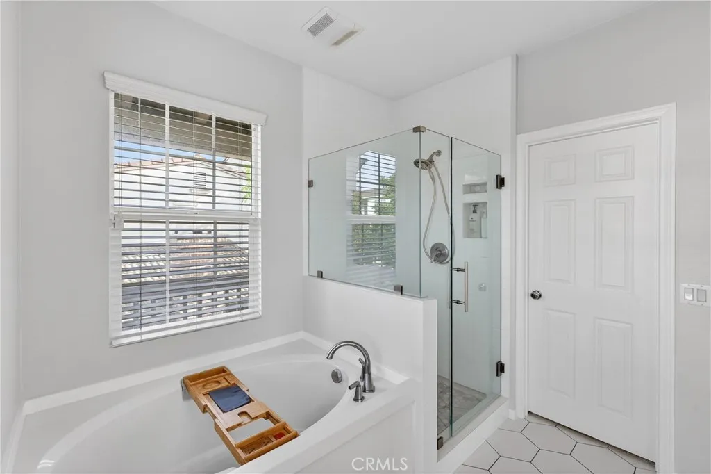 The expansive primary suite is light and bright and complete with a beautifully remodeled bathroom featuring a separate soaking tub and shower, plus a generous walk-in closet with built-in storage. The open-concept kitchen showcases granite countertops and flows seamlessly into a large dining area — perfect for entertaining. Abundant natural light throughout enhances the airy feel of the home.