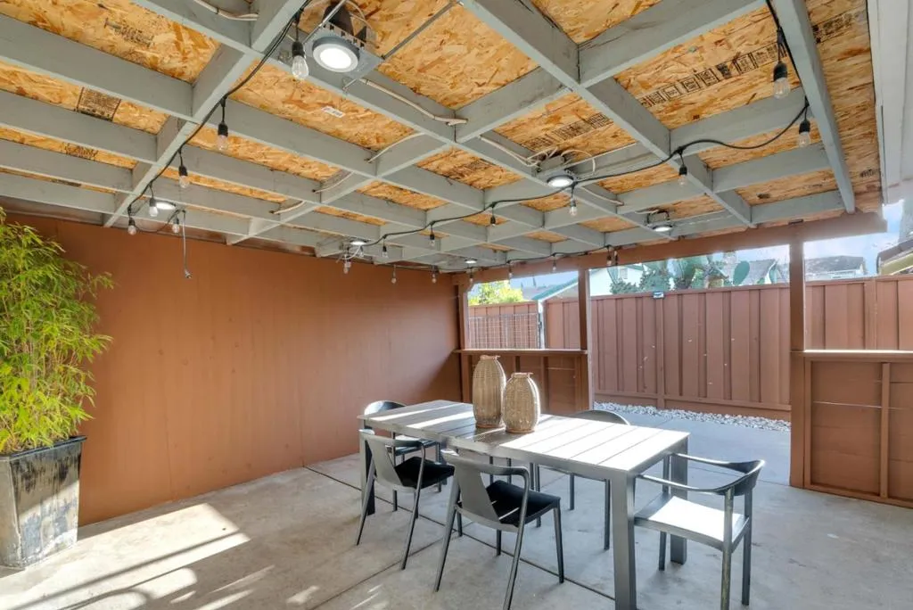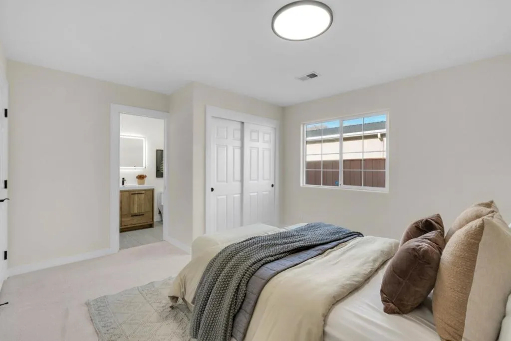 This beautifully remodeled home offers comfort, convenience, and flexibility, ideally located just minutes from shopping, dining, supermarkets, parks, and schools. The expansive backyard provides room for a possible ADU or future expansion and includes additional side driveway access, along with ample street parking for guests and everyday ease. The main home features four bedrooms, two and a half bathrooms, plus a versatile flex room currently used as a gym. Interior upgrades include luxury vinyl flooring, a remodeled kitchen with stainless steel appliances, updated lighting, fresh interior paint, and new carpeting in the bedrooms. Bathrooms feature custom tile flooring, shower over tub designs with glass enclosures, and a primary suite with a full ensuite and recently remodeled bath. Additional highlights include dual pane windows throughout, a low maintenance fenced front yard with turf, a two car garage with epoxy flooring plus an additional covered carport, 200 amp electrical service with owned solar panels, and EV charger readiness. Enjoy an enclosed patio ideal for outdoor dining, 2nd kitchen, a spacious backyard with lawn and mature orange tree, smart home features, and a roof replaced in 2019, making this a move in ready home designed for modern living.