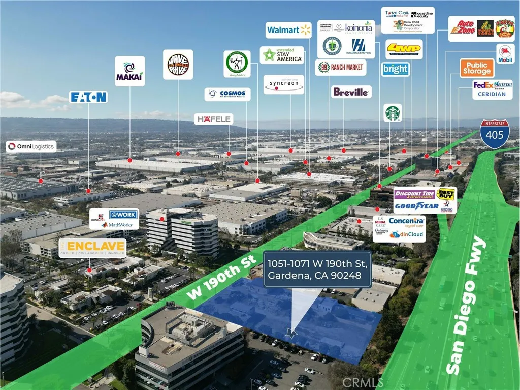 The offering comprises an exceptional 1.57-acre development site located at 1051–1071 W 190th St, delivering a rare combination of scale, visibility, and strategic positioning within Harbor Gateway South—a submarket experiencing accelerated investment and tenant demand. With direct 405 Freeway frontage, the property commands continuous exposure to high traffic volumes and provides seamless access to the South Bay, Long Beach, and the greater Los Angeles employment centers.