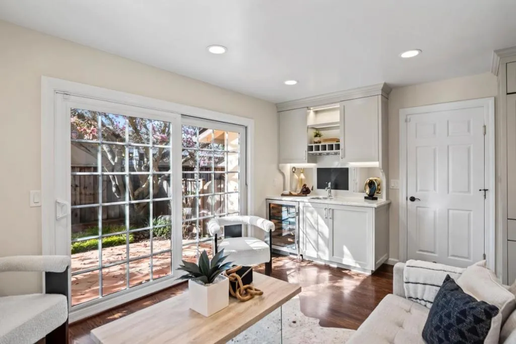 Stylish interior & high-end upgrades in ideal location! Beautiful kitchen features quartzite countertops, ample maple cabinetry, attractive backsplash, deep fireclay sink, stainless steel appliances, & bonus pop up shelf for small appliance storage & extra counter space! Family room just beyond includes wet bar with built-in wine fridge, ideal for entertaining. The separate living room is anchored by an elegant remote gas stone fireplace, & French doors with side panels in the adjacent dining area flood the space with natural light. Primary bedroom offers dual closets and an updated en-suite with marble countertops, lighted medicine cabinet, & high-end Toto toilet. Additional highlights include dual pane windows, Nest system, crown molding, stunning oak floors, & central heat & AC. Dream backyard designed for the Bay Area's beautiful weather with plunge pool, lawn, roses, 3 lemon trees, raised planter beds with colorful flowers, & seating area on attractive pavers. An oversized side yard shaded by a stunning magnolia tree is perfect for additional seating! Great location near major thoroughfares, public parks, high-end amenities, & more! Excellent nearby schools: West Valley Elem. (0.5 miles), Cupertino Middle (across the street), & Homestead High (0.3 miles) (buyer to verify)!