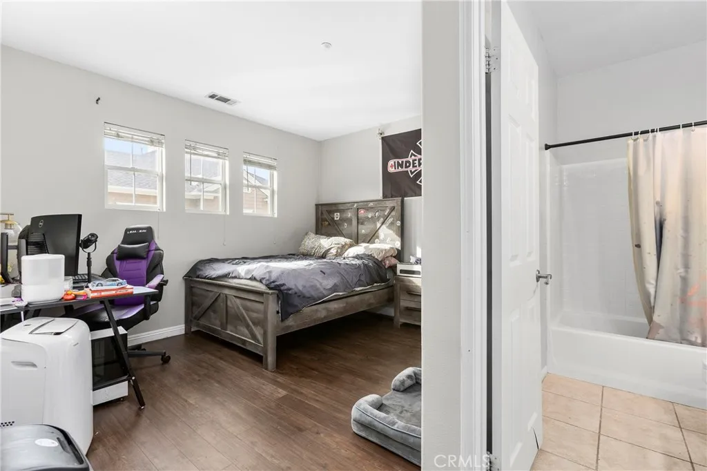 The primary suite offers a large en-suite bathroom with dual vanities, a separate shower, Roman soaking tub, and two generous walk-in closets. The secondary suite includes its own private bath and walk-in closet, providing ideal comfort for guests or family members.