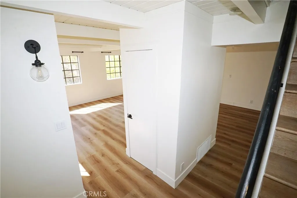 This is a beautiful 4 bed, 3 bath main house (front house) offered with utilities included in the rent! This two-story traditional-style home with a distinctive gambrel-style roof featuring dormer windows on the upper level. The roof is covered in light brown shingles, giving it a classic cottage or Cape Cod–inspired look in a quiet suburban neighborhood. This front house includes an attached garage and a wide concrete driveway leading to a covered patio (with a small metal shed) and another covered porch area with tile floors, enclosed w/clear vinyl paneling creating a protected indoor/outdoor setting. Large glass sliding doors leads to a dining area with modern off-white kitchen area with stainless steal appliances and a large rectangular ceiling light for more illumination. A black-framed grid window becomes a focal point, bringing in natural light with pleasant view to greenery. 1 restroom downstairs. Laundry is inside the garage. The home is recently renovated and is bright with neutral white walls and exposed beam ceilings. It has light-toned wide plank wood flooring throughout. Large grid-panel windows bring in natural light and tree views. White interior palette with paneled walls and white paneled ceiling w/ a long rectangular recessed lights. A simple black chandelier fixture in living area and black curtain rods. The interior staircase has black metal railing. There is two updated bathrooms -one with a tub, another with a walk-in shower, both with shaker-style vanity and modern black faucet and fixtures. Next is a small office/bedroom with a walk-in closet and 3 more bedrooms with views to the neighborhood. Conveniently located near several local parks including Montrose Community Park with sports courts, playgrounds, and picnic areas, as well as Deukmejian Wilderness Park offering scenic hiking trails, the Two Strike Park and Rosemont Preserve provide even more outdoor recreation parks.