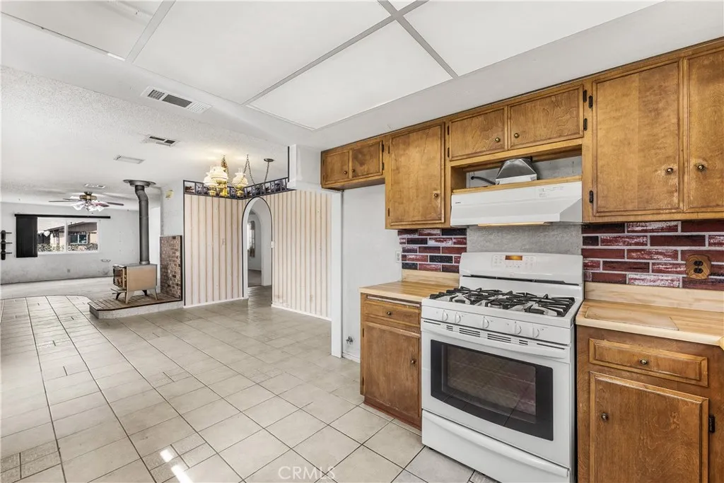 Great opportunity here! This ranch style single story is situated on a corner lot! Great curb appeal with fresh exterior paint, rose garden and mature shade trees. Functional floor plan with 3 bedrooms, 2 full baths, 1,778 square feet of living space with TWO large living areas! UPGRADED Lennox HVAC unit and UPGRADED windows throughout! The kitchen has tile flooring, a spacious dining area and a sliding glass door to the backyard. The wood burning stove is centrally located to heat the whole house! Peaceful backyard with a covered patio, block wall fencing, lush landscaping and a large storage shed. 2 car attached garage PLUS possible RV access from the side!