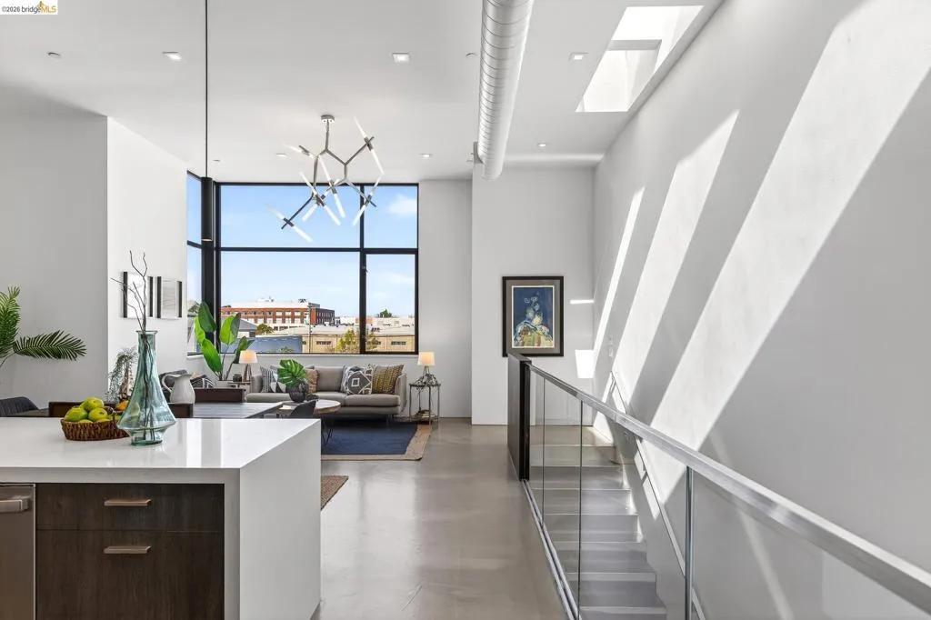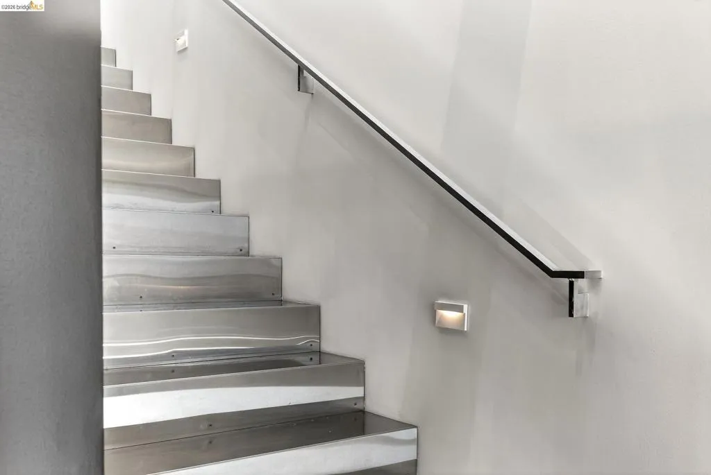 Great new price! 811 Folger Avenue offers an elegant interpretation of a hybrid “Live-Work” design by architect David Stark Wilson. This is an all-electric property, BESO exempt! The property has two residential floors and one office/workspace floor. Both the residential and workspace/office floors have independent heating and AC systems, all powered by a rooftop solar array. The residential floors feature 3 bedrooms and 2 bathrooms, a private front deck, and an open-plan study. The top floor has a spectacular “great room”, a dynamic kitchen/dining area/living room combination featuring a huge island, a suite of SS energy-efficient appliances, and beautiful custom windows with urban views. The office/workspace floor has a level-in independent entry, an ADA bathroom, and the counter space is plumbed for a microwave and refrigerator. The tall French doors capture the southern light, illuminating this space with bright natural light. This office space may be rented separately. The heart of the property is an unexpected stainless-steel staircase, an unexpected companion to the polished concrete floors and board-formed concrete walls. The property has two designated parking spaces (one space has an electric car charger) and is near Berkeley Bowl, shops, cafes, and mass transit.