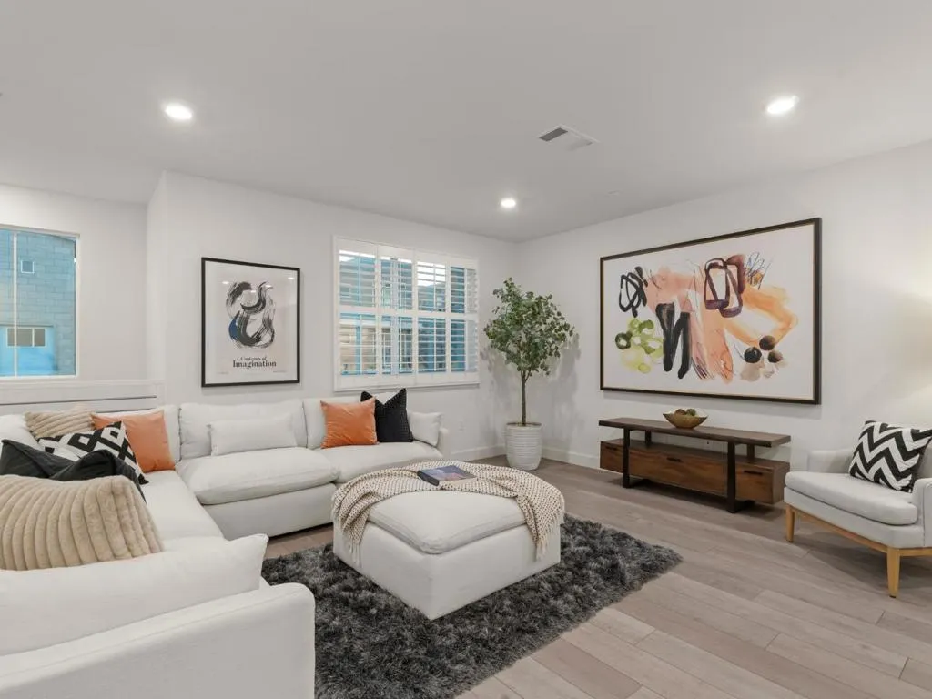 Welcome to modern living in the desirable Communications Hill community of San Jose & the greater Silicon Valley. Built in 2020, this spacious tri-level townhome offers 4 bedrooms and 3.5 baths across approximately 1,995 sq ft of thoughtfully designed living space. The versatile floor plan features a convenient ground-level bedroom with an en suite bath - ideal for guests, extended family, or a private home office. The main living level showcases an open-concept great room filled with natural light, seamlessly connecting the living, dining, and kitchen areas for comfortable everyday living and easy entertaining. The contemporary kitchen features sleek countertops, stainless steel appliances, a gas cooktop, generous cabinetry, and a large island with bar seating. Upstairs, the spacious primary suite offers a walk-in closet and a well-appointed bathroom with dual sinks and modern finishes. Two additional bedrooms and a full bath provide flexibility for family, guests, or workspace needs. Additional highlights include plantation shutters, tankless water heater, water softener, in-unit laundry, and an attached 2-car garage. Enjoy nearby parks, scenic walking trails, and convenient access to shopping, dining, transit, Highway 85, 87 and the greater South Bay. You'll love it!