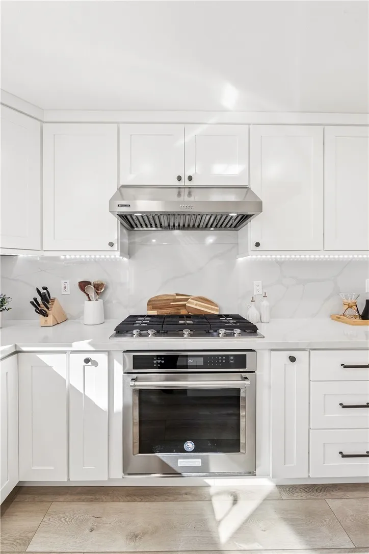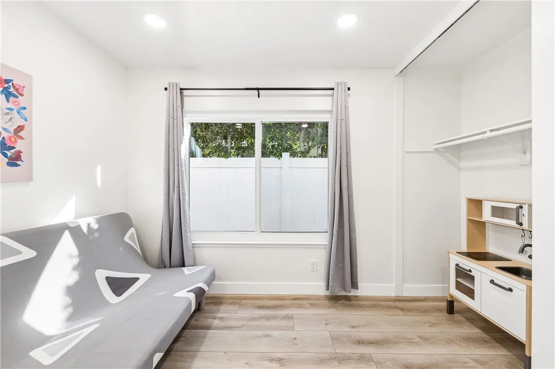 BEAUTIFULLY UPGRADED SINGLE-STORY HOME WITH GATED COURTYARD, DESIGNER KITCHEN & FLEXIBLE 4-BEDROOM + OFFICE FLOOR PLAN. Welcome to this beautifully upgraded single-story residence offering a perfect blend of modern style, comfort, and functionality. From the moment you arrive, the home makes a striking first impression with fresh white exterior paint accented by bold black trim, low-maintenance rock landscaping, and a private gated courtyard that creates a charming and welcoming entry. Step inside to an inviting family room filled with natural light from multiple windows and enhanced with elegant crown molding. The space is anchored by a cozy brick fireplace featuring black fireplace doors, a tile hearth, and a classic wood mantle—creating the perfect setting for relaxing or entertaining. The home flows seamlessly into the dining area and an expanded gourmet kitchen that serves as the true centerpiece of the home. Designed for both everyday living and entertaining, the kitchen offers an impressive amount of cabinetry and counter space along with white shaker cabinets, quartz countertops, and a stainless steel farmhouse sink. A massive center island becomes the focal point of the room, complete with custom pendant lighting, a secondary prep sink, and a built-in wine refrigerator—perfect for hosting gatherings or preparing meals with ease. Oversized rollout drawers and thoughtful storage solutions enhance both functionality and convenience. The flexible and spacious layout includes four generously sized bedrooms, three full bathrooms, and a dedicated office, providing plenty of space for remote work, guests, or multigenerational living. The bathrooms have been updated with modern vanities and finishes, complementing the home's contemporary feel. Additional upgrades throughout the home include recessed lighting, three mini-split air conditioning systems for customizable climate control, and all windows upgraded to dual-pane for improved energy efficiency. Two updated sliding doors provide seamless access to outdoor spaces while allowing abundant natural light to flow throughout the home. This thoughtfully upgraded single-story property combines stylish finishes, a highly functional layout, and numerous modern improvements, creating a move-in-ready home ideal for both comfortable daily living and effortless entertaining. Welcome home!