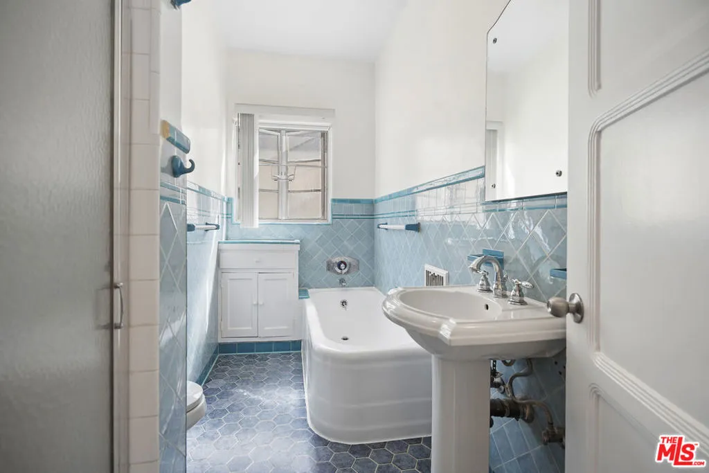 Available starting April 1, 2026. Charming 1 bed/1 bath corner unit for lease! Situated on the upper level of a secure building, this beautifully updated 1930s Spanish-style apartment seamlessly blends classic charm with modern amenities in a prime location. Unit C is thoughtfully upgraded with gorgeous refinished hardwood floors, an A/C unit in the bedroom, and fresh paint throughout, while also retaining its original charm with elegant crown molding, colorful tiling, and vintage touches. The sun-drenched living room boasts a decorative fireplace and a balcony offering peaceful tree top views. The kitchen is equipped with stainless steel appliances including a dishwasher and ample cabinet and counter space. There is a generously-sized bedroom plus a full bathroom with contemporary tile floors, a soaking tub, and a shower. Additional features include in-unit laundry with a washer/dryer and a detached one-car garage, providing secure parking and additional storage. Nestled on a peaceful corner lot, this unit is just moments away from local grocery stores, Pan Pacific Park, and endless shops, restaurants, and entertainment on La Brea, Melrose, and at The Grove. This won't last long! Available starting April 1, 2026. Currently tenant-occupied through March 8, 2026. No showings until tenant moves out. Dogs are not allowed. Cats are allowed. Minimum income requirement: gross monthly income of 2.5-3x the rental amount. Some photos are virtually staged.