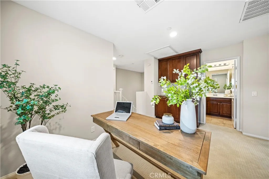 House is unfurnished. This turnkey end-unit 3 beds/2.5 baths home with a loft upstairs and a gated front patio is only attached to one side and faces a green belt with plenty of parking. The main floor is open and bright with lots of windows. The gorgeous kitchen features granite countertop and stainless appliances. All bedrooms are on the second floor, including the generous master suite - double sinks and separate shower. The laundry is conveniently located next to the kitchen. UPGRADES include wood and tile floor on the main level, custom designer interior wall paint, recessed lighting and much more. Enjoy the resort-style amenities that Woodbury East community has to offer including Jr. Olympic sized pool, tennis court, gym, BBQ grills and playground. It is also walking distance to all of the shopping and restaurants in the Woodbury Town Center.
