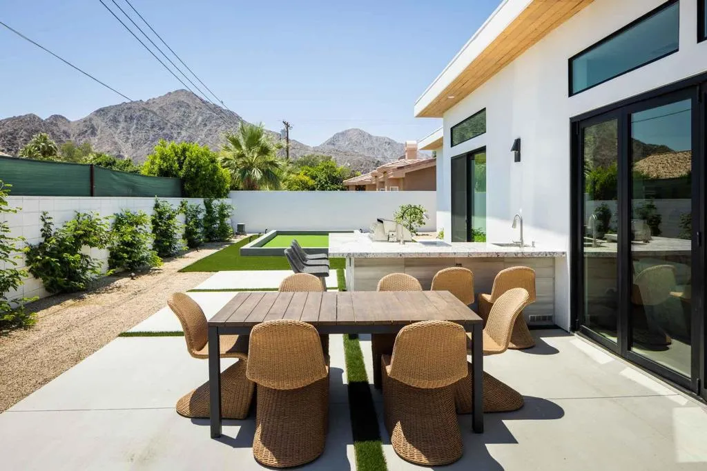 New co-ownership opportunity: Own one-eighth of this professionally managed, turnkey home. Desert Estate is a sleek home with mountain views, private courtyard and bocce court. The home has three en suite bedrooms, plus an attached casita and bath. Two sets of folding sliders connect living spaces inside and out. The front courtyard includes a pool, spa and tanning ledge, while the rear yard has an outdoor kitchen and the bocce court. The gourmet kitchen features custom cabinets, quartzite countertops, backsplash and waterfall edge island, and stainless steel appliances. The dining area includes a wine fridge. The solar-powered home, within walking distance of Old Town La Quinta, has a 3-car garage. The home will have all new furniture and be professionally decorated.