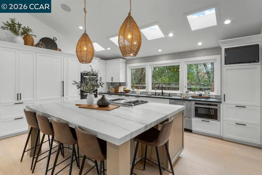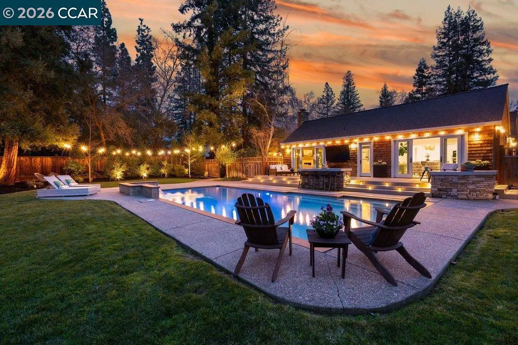Tucked at the end of a private cul-de-sac in Diablo, this exceptionally remodeled estate offers a rare opportunity to own TWO FULLY INDEPENDENT RESIDENCES on apx. 1/2 acre of park-like grounds.Thoughtfully designed the property features a refined single story main residence, showcasing vaulted ceilings, European white oak floors and a seamless indoor-outdoor flow. Custom detailing and amenities, including smart home technology provide comfort and convenience throughout! Expansive living spaces open to an elevated entertaining deck overlooking the resort-style pool and lush landscaping. The fully independent guest residence lives like a true second home - complete with its own private yard, an upstairs primary suite and an additional bedroom and bath on the main level. Ideal for multi-generational living, extended guests, or private work-from-home retreat. With versatility rarely found in today's market. The grounds are a stand out feature - an artful composition of mature landscaping, curated garden rooms and intimate outdoor spaces for both relation and entertaining. Every element has been created to enhance the experience of indoor-outdoor living. This is more than a home, it is a private dual residence estate offering a lifestyle of comfort, flexibility. and timeless appeal.