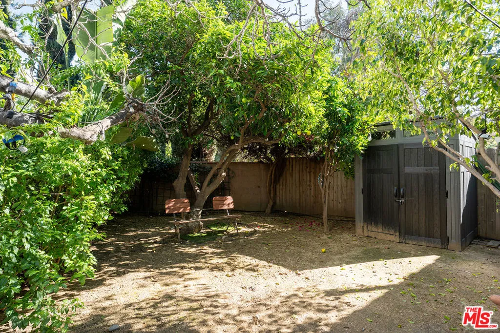 Behind a gated entry and arched porch, this 1920s unit delivers every Atwater Village wish list item: sun-splashed living and dining rooms with oversized picture windows, ironwork accents, and plenty of charm. The galley kitchen keeps the style going with two-tone cabinetry, chevron butcher-block counters, brass hardware, and a full stainless suiteplus a window over the sink that frames the citrus canopy outside. Updated bath with subway tile and matte-black fixtures, roomy bedroom with dual exposures, and an in-unit washer/dryer tucked into a closet for easy laundry days. Outside, the private yard is the showstopper: mature fruit trees, turf play lawn, multiple patios for dining or lounging, string lights, and a storage shed for bikes/gear. A perfect outdoor setting to sip morning coffee to dinner al fresco. All of it sits moments from Glendale Blvd cafs, the LA River bike path, and Atwater Village hot spots.