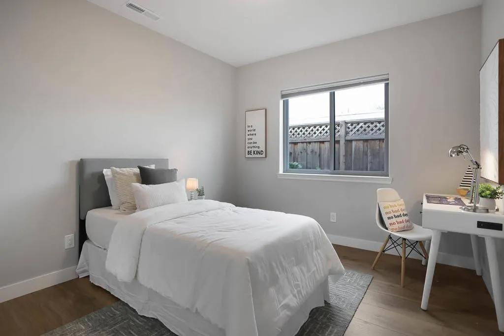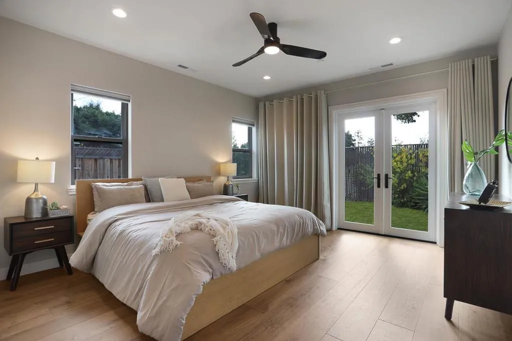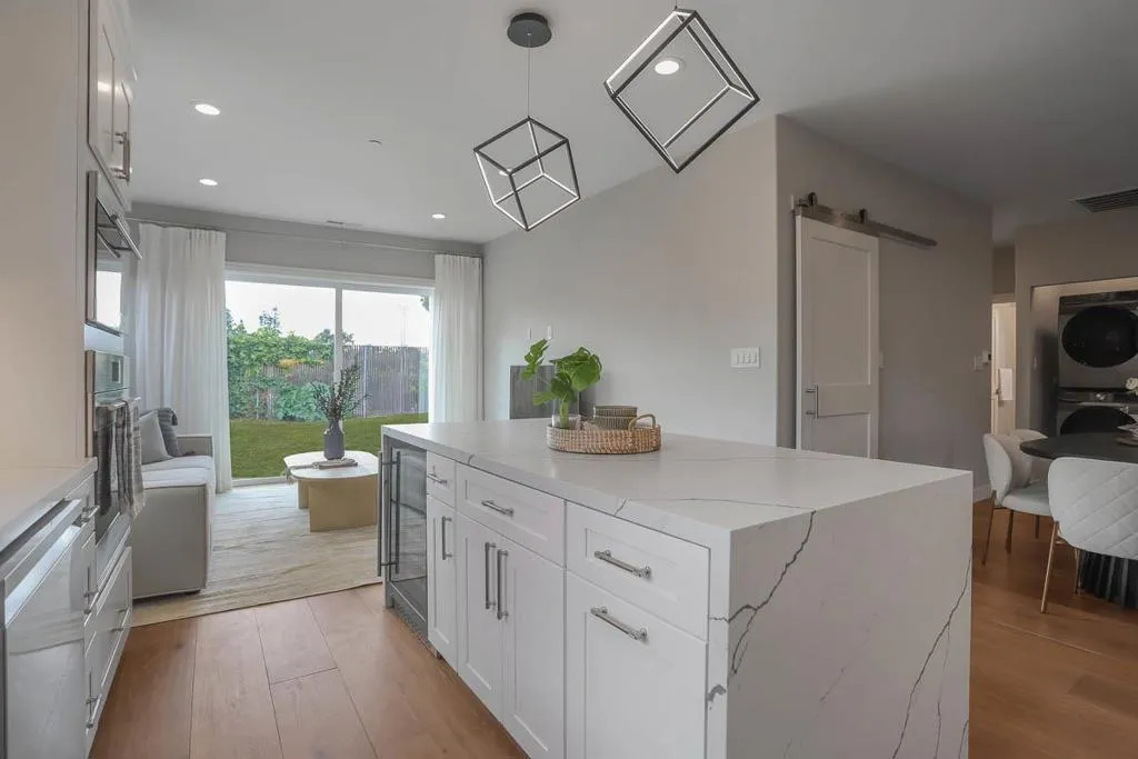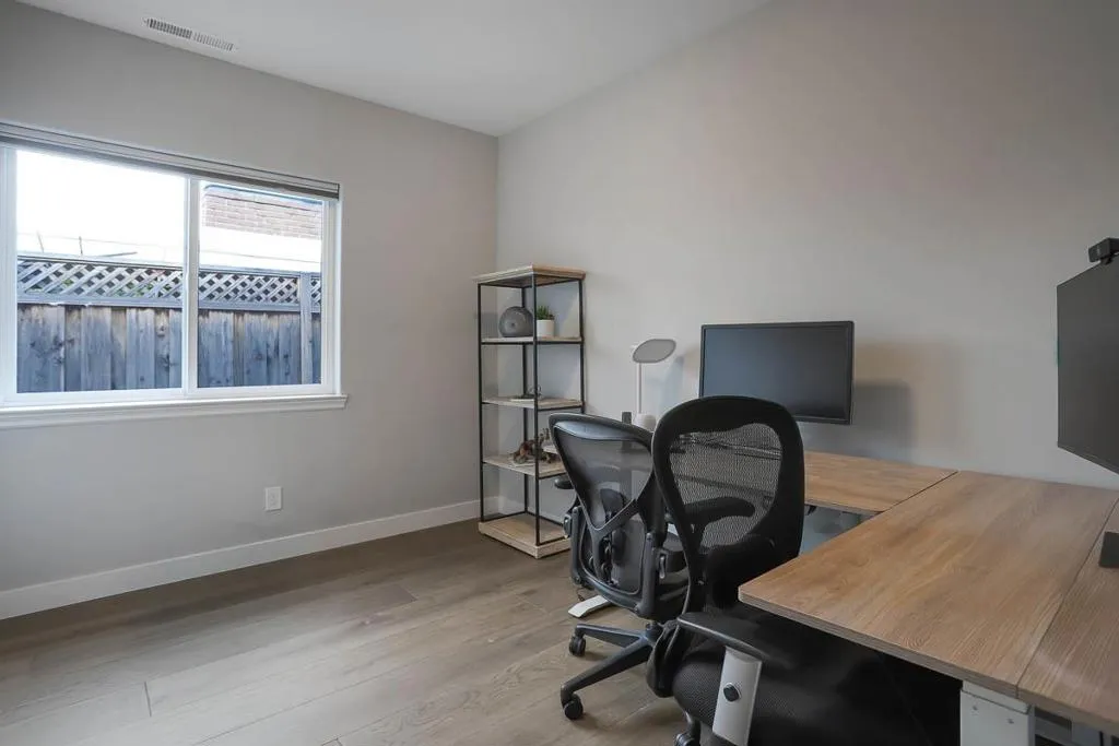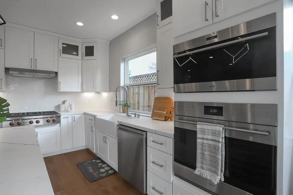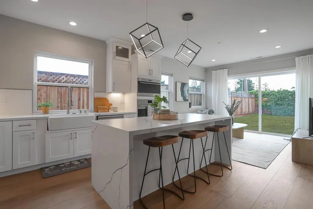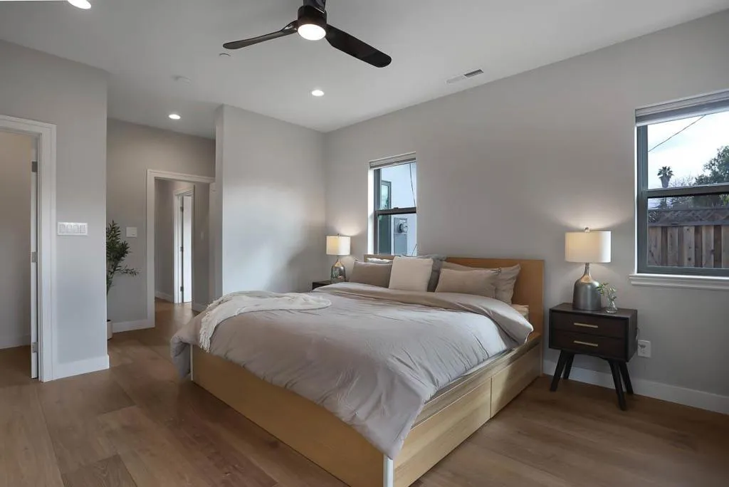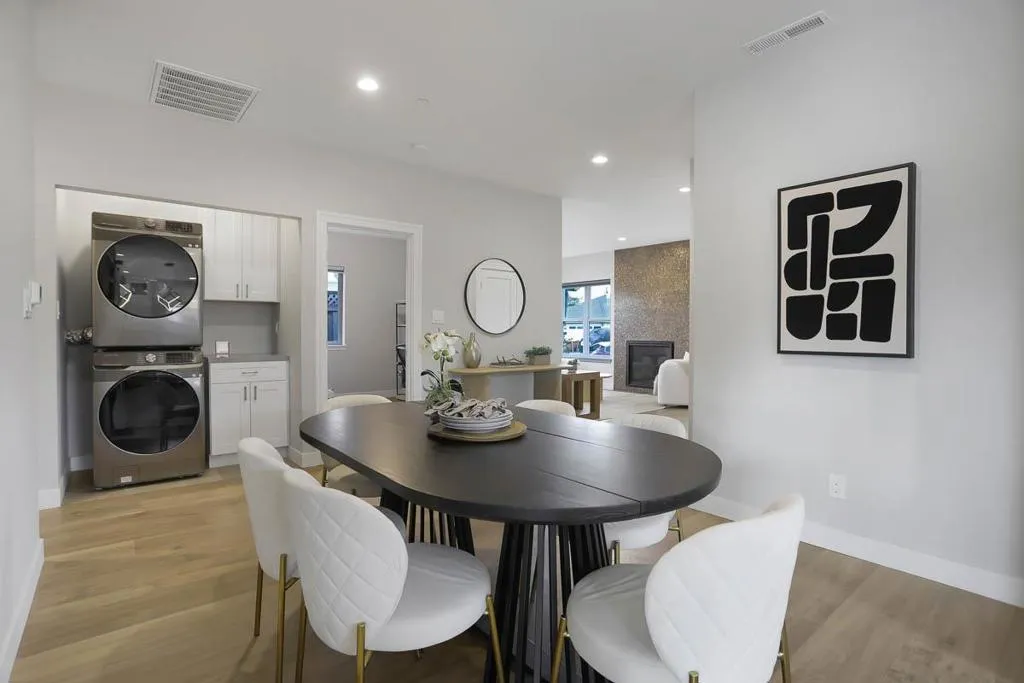 Built in 2023 from the ground up with modern styling and design. Step inside this expansive, open-concept floor home that is bathed in natural light, where 9ft ceilings and rich white oak wood flooring create an airy, sophisticated ambiance. The inviting front living room is anchored by a warm gas fireplace. The spacious open kitchen features a large island with seating, a beautiful farmhouse sink, shaker style cabinets with elegant quartz countertops & premium stainless steel appliances. Beyond the kitchen, is a separate family room which overlooks the backyard from a large sliding glass door. The home features a large primary bedroom with walk in closet, ensuite bath with dual vanity, separate stall shower and tub as well as french doors leading to backyard. An additional suite with a private bath for convenience. High-end features continue with inside laundry including a stackable Samsung laundry suite, CAT-5e cabling, a fully finished 2-car garage equipped with a 40Amp EV charger and automatic roll-up door. Milgard dual pane windows, fully insulated walls, a durable composite roof & integrated fire sprinklers all assembled in 2023 under the latest codes. Located near Santa Clara's central park complex and featuring some of Santa Clara's most sought after schools.