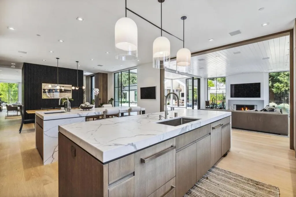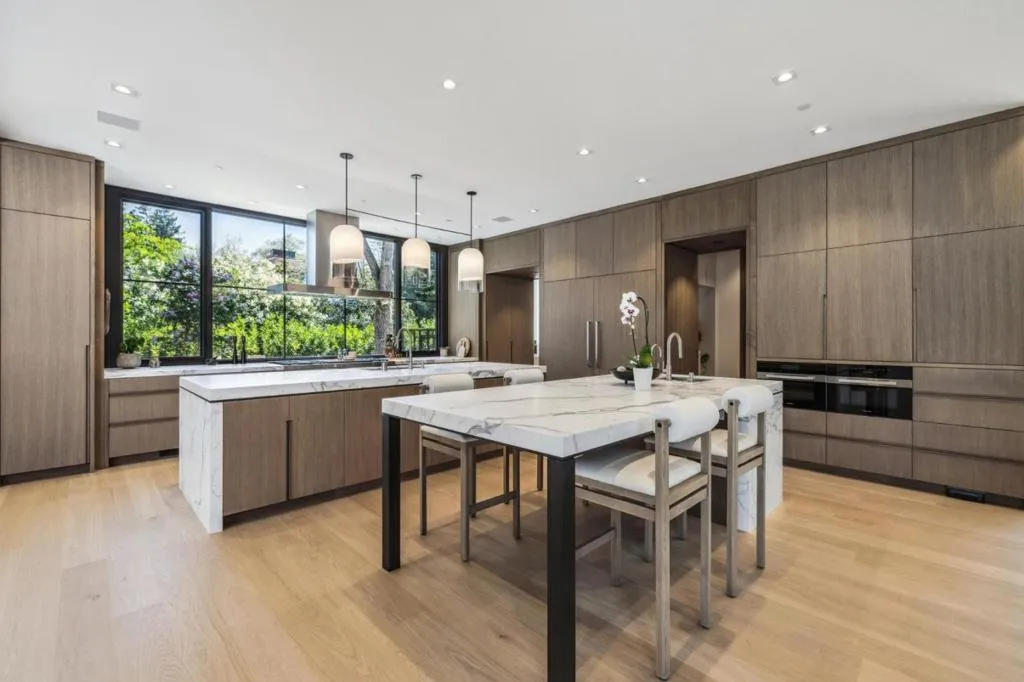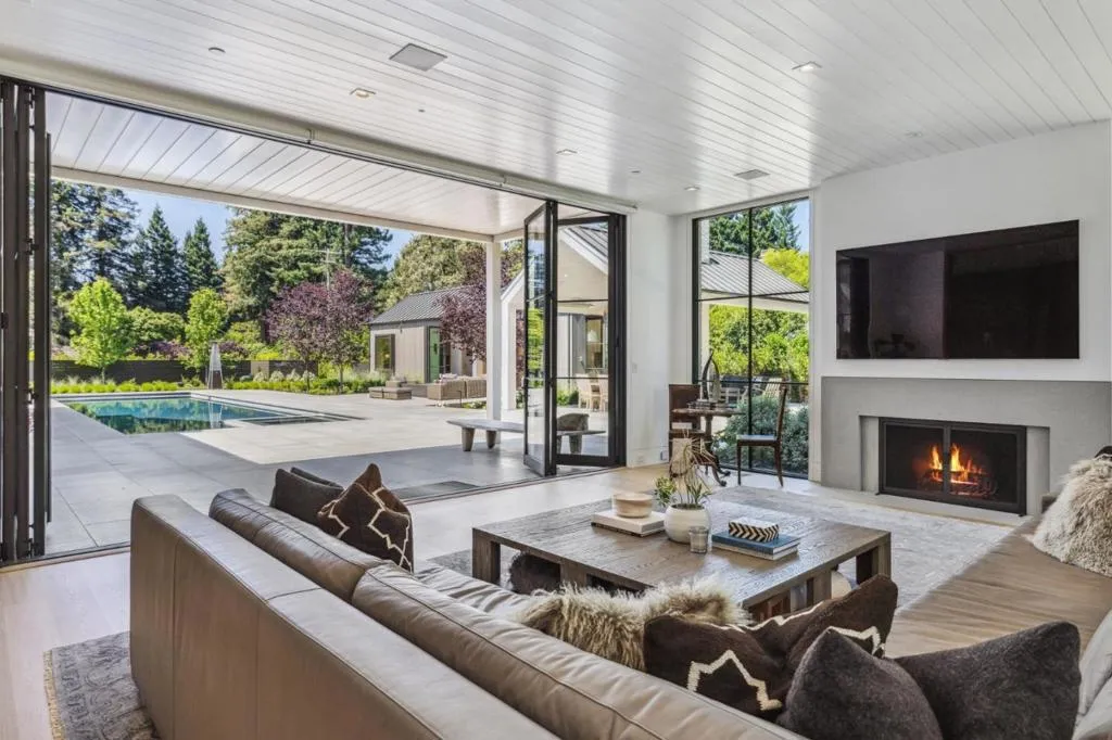 Completed in 2024, this extraordinary, custom-built Atherton estate represents the pinnacle of modern luxury living with unmatched quality, architectural presence and refined design. Offering 5 bedrooms and 8 baths, the residence blends grand scale with thoughtful functionality tailored to today's most discerning buyer. A meticulously landscaped entry courtyard with water feature and dramatic pivot door opens to light-filled interiors, including formal living and dining spaces, wet bar and wine cellar. The chef's kitchen features dual islands, walls of glass and seamless flow into the expansive family great room with disappearing glass doors for true indoor-outdoor living. The upstairs primary suite offers a spa-inspired bath and private relaxation terrace, complemented by a dedicated executive office. Resort-style grounds include a pool, spa, expansive lawn, covered loggia with outdoor fireplace and al fresco dining pavilion creating an ideal setting for entertaining or hosting large gatherings. Amenities such as a golf simulator, fully equipped gym, voice-activated smart home system, private motor court, and four-car garage space complete this exceptional offering. A rare opportunity to own a newly completed modern estate in one of Silicon Valley's most prestigious enclaves.