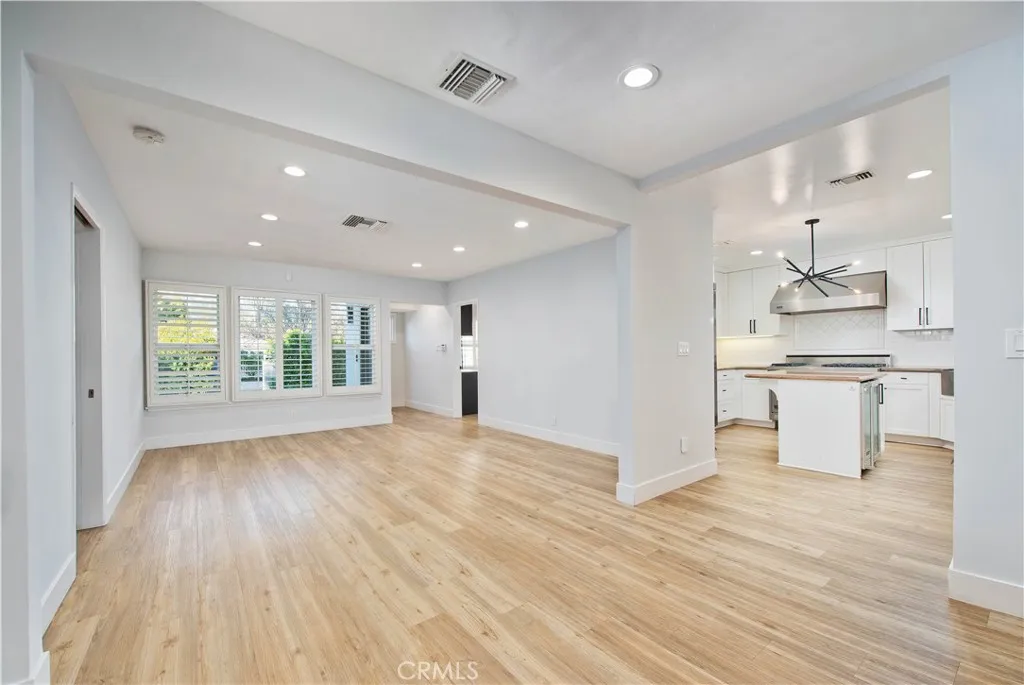 Spectacular single-level residence, beautifully remodeled with refined finishes and thoughtful design throughout. At the heart of the home is a stunning chef’s kitchen featuring a generous center island, custom cabinetry, farmhouse sink, and premium Viking appliances including a dual-oven range, refrigerator, microwave, and beverage refrigeration—perfectly curated for both everyday living and elevated entertaining. The sunlit open-concept floor plan seamlessly blends the formal living room, dining area, and expansive family/media room, highlighted by a central fireplace and direct access to the rear grounds—creating effortless indoor-outdoor flow. Offering three spacious bedrooms, the home is anchored by a serene primary suite complete with a dressing area and an adjacent spa-inspired bath featuring a dual-sink vanity, seamless glass shower, and soaking tub retreat. Step outside to the sprawling, ultra-private backyard oasis showcasing a covered patio lounge, grassy play area, BBQ bar, and gated driveway space with basketball court—all surrounded by mature landscaping for exceptional privacy. A detached two-car garage with abundant storage, gated driveway, and hedged front yard with additional parking complete this exceptional offering. A rare opportunity to enjoy a turnkey single-level home designed for comfort, style, and entertaining.