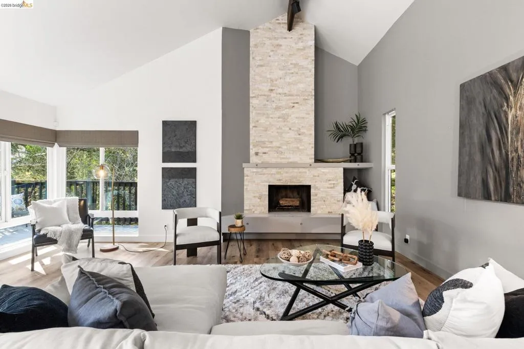 Enter into your own private retreat in the Oakland Hills' Thornhill neighborhood. Anchored by an oversized stone fireplace, the light-filled great room sets the tone for elegant leisure, with living areas flowing gracefully from room to room. An abundance of windows welcome in the verdant surroundings throughout the main floor, with a welcoming multi-level deck off the dining area that beckons for morning coffee or impromptu al fresco gatherings. The wonderfully-updated kitchen features stainless steel appliances and a breakfast bar next to a picture-perfect sitting room, while a secluded loft nook overlooks most of the main floor. Direct garage access from this level is an added convenience. Finally, a bedroom with direct exterior access rounds out the main floor’s offerings. Downstairs, find an enviable primary suite with updated bath, as well as two more bedrooms, laundry and a remodeled full bath, as well as direct access to the back deck structure. On the lowest level, accessible from the deck, find your bliss with a lounge, half-bath, and dry sauna room. Perfection.