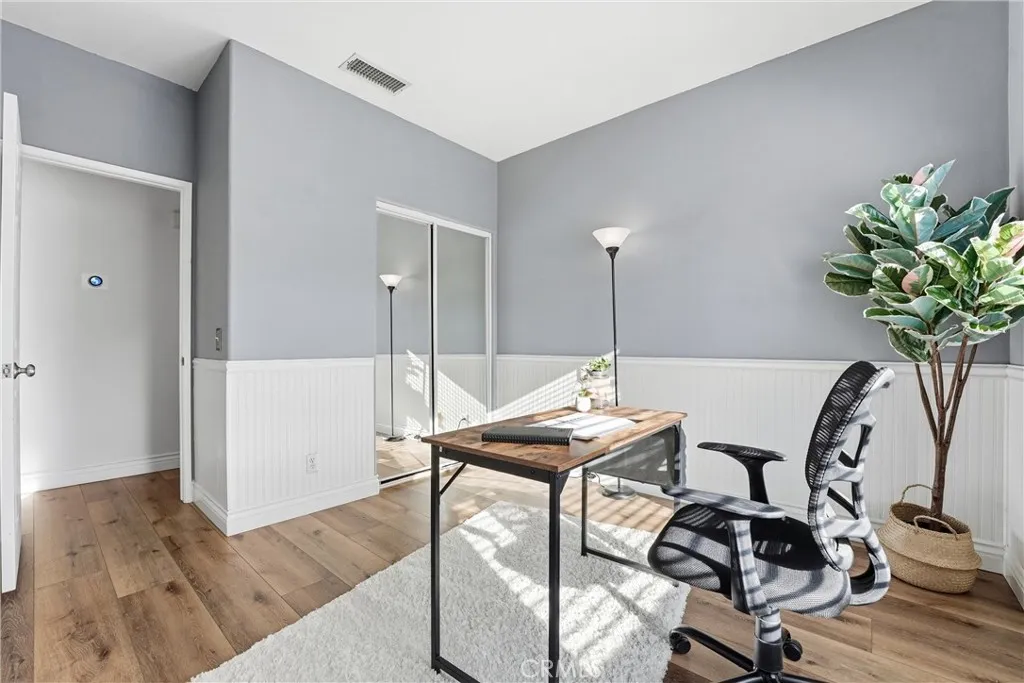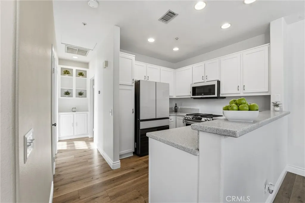 Modern updates and everyday comfort come together in this bright and inviting 2-bedroom, 2-bathroom corner carriage-style condo in Rancho Santa Margarita. With the garage below and all living space on one level, this thoughtfully refreshed home offers privacy, convenience, and a move-in-ready lifestyle. Inside, the home features new flooring installed in 2023, fresh interior paint, custom feature walls, and a restyled fireplace mantle that adds warmth and character to the living space. The kitchen has been refreshed with professionally resurfaced white cabinetry, new hardware, and a full suite of 2024 Samsung Bespoke smart appliances, including a gas stove, dishwasher, microwave, and refrigerator. Several key systems have also been recently updated for added peace of mind. Improvements include a brand-new water heater (2024), a Nest-controlled central AC system, and a Samsung top-load washer and dryer set (2023). The primary suite offers a comfortable retreat with mirrored closet doors and a new glass shower door installed in 2024. Additional highlights include a 1-car garage with epoxy flooring and a newer door mechanism, plus an additional reserved parking space. New blinds, upgraded outlet plates, and refinished stair railings add to the home's polished feel. Ideally located near parks, scenic hiking trails, shopping, and dining, this home offers convenient access to the lifestyle amenities that make living in Rancho Santa Margarita so desirable.