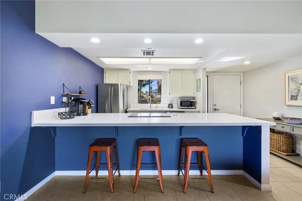 Remodeled Kitchen: The kitchen has been beautifully remodeled to create a more open layout, enhancing the views of the golf course.