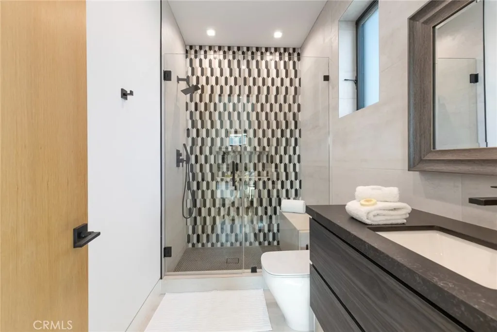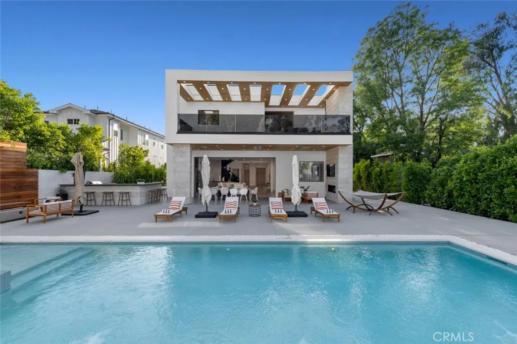 Entertainer’s backyard with pool & spa, covered patio, built-in BBQ and extensive outdoor kitchen with designer landscaping. Gorgeous en-suite pool house /cabana and stadium volleyball court/sports court. Electrically gated, smart system wired, alarm, sound system, cameras and a Pickleball court ready to enjoy!