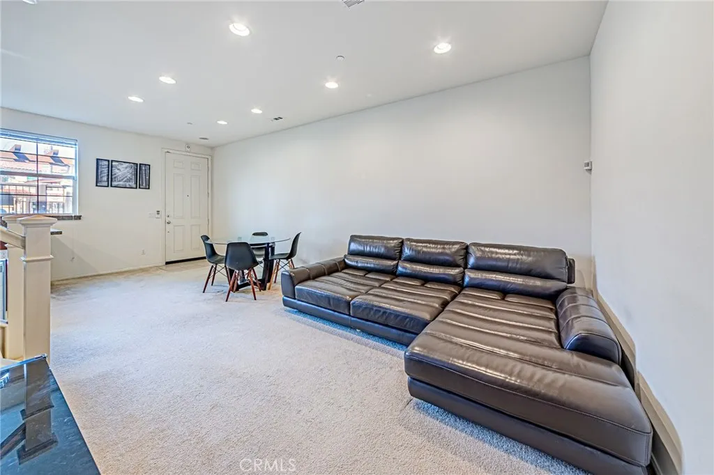 The first floor features carpet flooring throughout, a spacious living room, and an open-concept dining and kitchen combo—perfect for both everyday living and entertaining. A convenient half bathroom is located downstairs, along with direct access to the 2-car garage just off the kitchen.