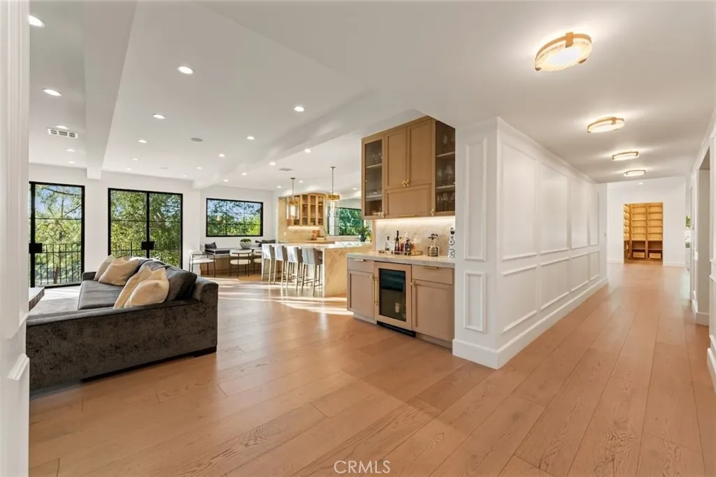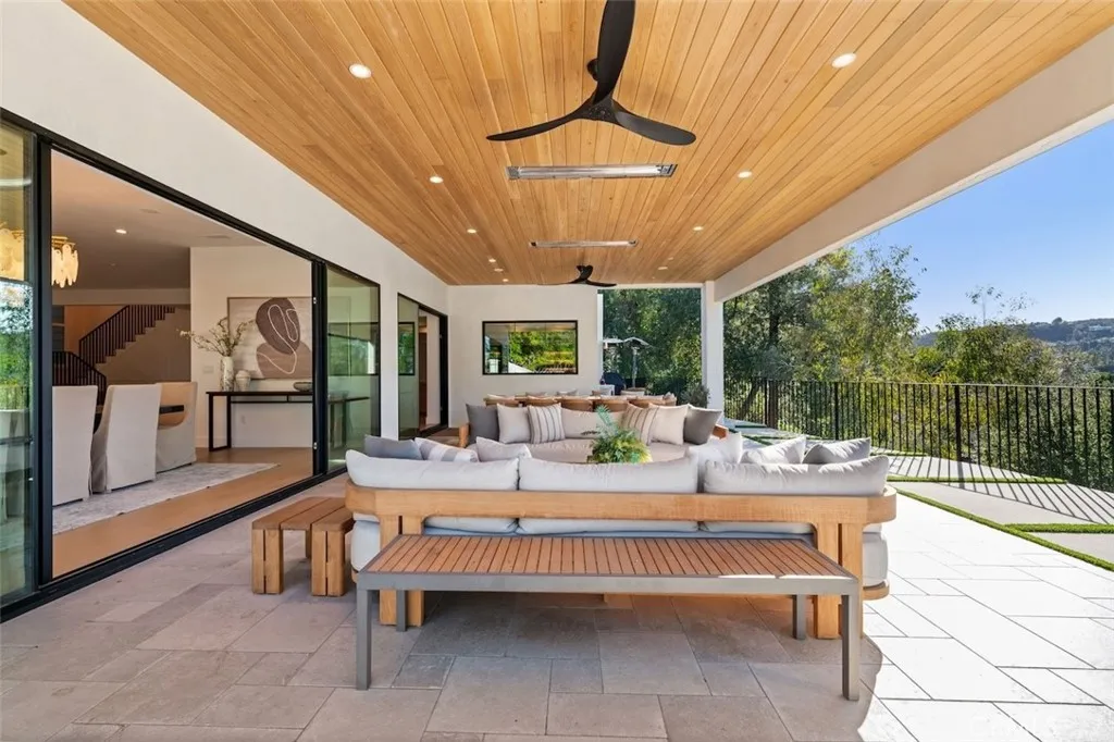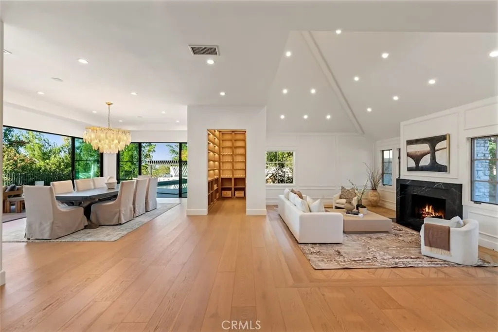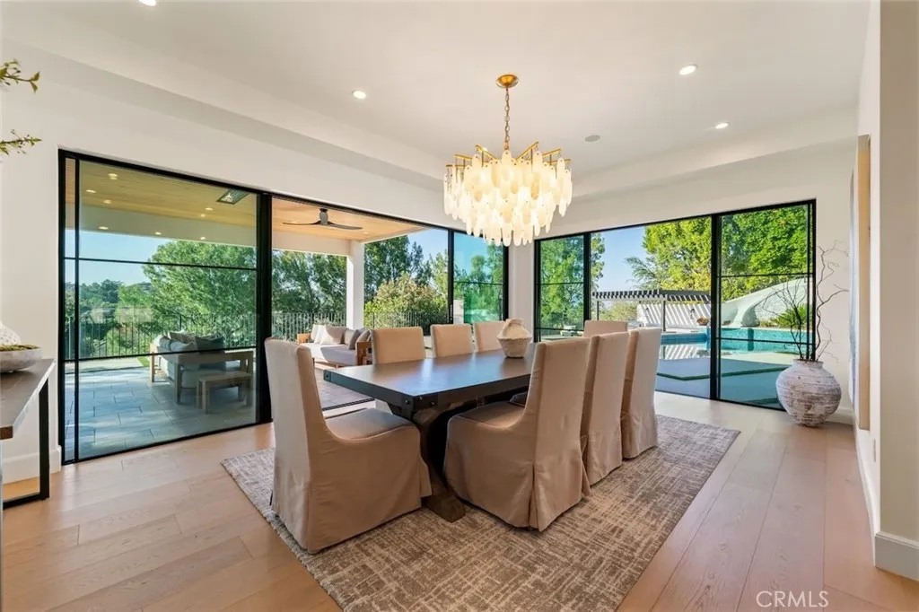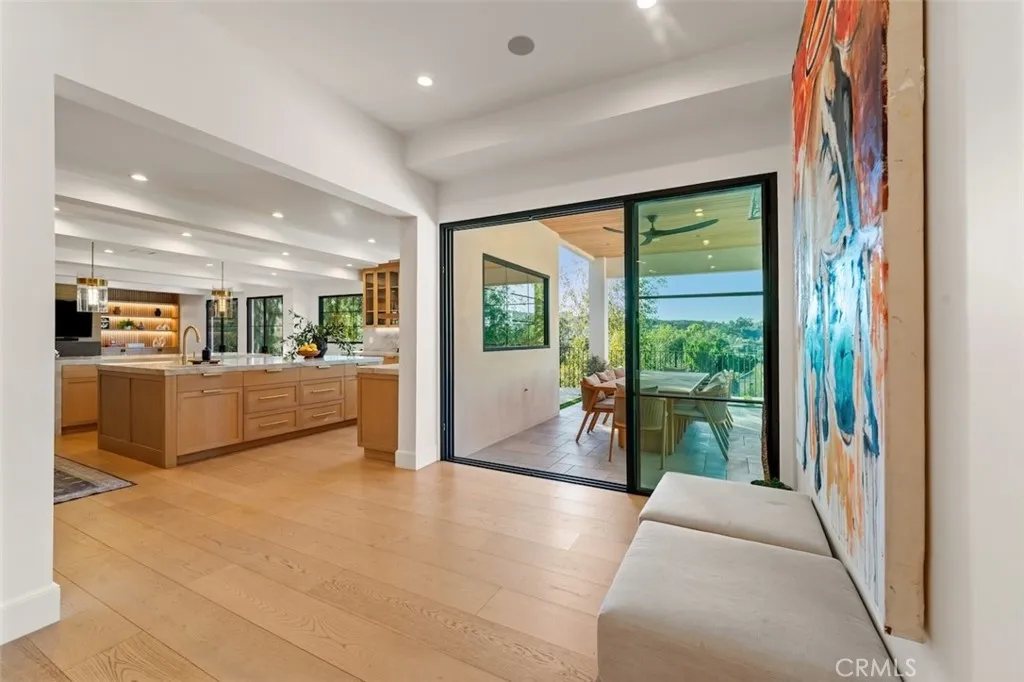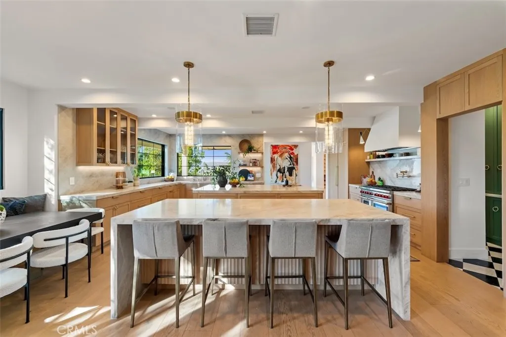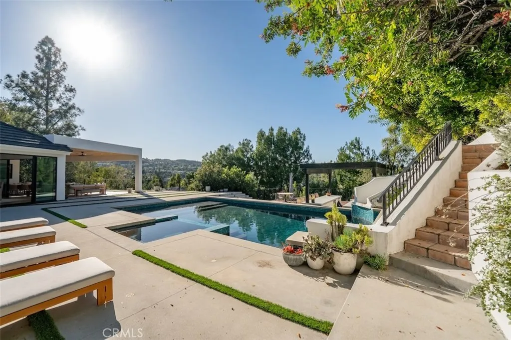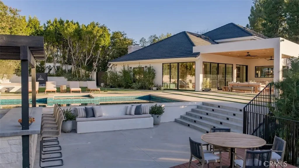 Set on a premier corner lot of approximately 30,000 sq ft, this extensively remodeled private estate offers 6,000 sq ft of luxurious living space with sweeping city and mountain views from nearly every room. The residence features 6 bedrooms, 6 bathrooms, plus a dedicated office, thoughtfully designed with elevated finishes and custom cabinetry throughout, including white oak flooring and exquisite natural stone surfaces that create a warm yet sophisticated aesthetic. At the center of the home is an oversized gourmet chef’s kitchen showcasing two impressive 9-foot islands, a hidden pantry, and seamless flow into expansive living and entertaining areas. Outdoor living is equally impressive with a cedar-covered patio overlooking the city, a 15-foot BBQ bar, and a beautifully designed fire-pit lounge, all surrounded by lush privacy. Blending modern elegance, scale, and breathtaking views, this exceptional Tarzana estate delivers a rare opportunity for refined indoor-outdoor California living.