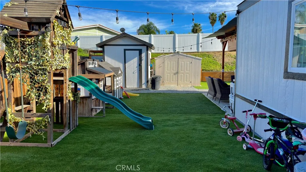 Welcome home to this well-maintained and thoughtfully updated residence located in the city of Nuevo. Boasting 3 bedrooms and 2 bathrooms, this home is situated in the established Rancho Nuevo neighborhood and is surrounded by newer construction communities, enhancing its desirable and evolving location while maintaining a peaceful setting. The exterior features low-maintenance finished landscaping with artificial turf installed throughout, complemented by landscape lighting and a versatile outdoor flex space beneath a freestanding patio securely set on a 12’ x 16’ concrete slab. The backyard also includes a storage shed and an additional outdoor plumbing connected to the septic system. Inside, the home offers a functional floor plan with tasteful updates, including newer kitchen cabinetry, quartz countertops, reglazed bathtubs, updated bathroom vanities, and tile flooring throughout. This property provides comfort, convenience, and practical upgrades, making it an excellent opportunity for buyers seeking a move-in-ready home in a growing area.