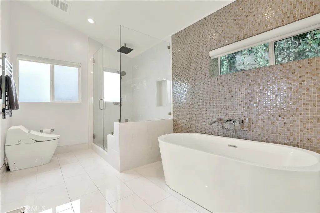 The residence includes three bedrooms and three bathrooms, featuring two spacious suites with attached baths plus an office with closet that may function as a third bedroom.