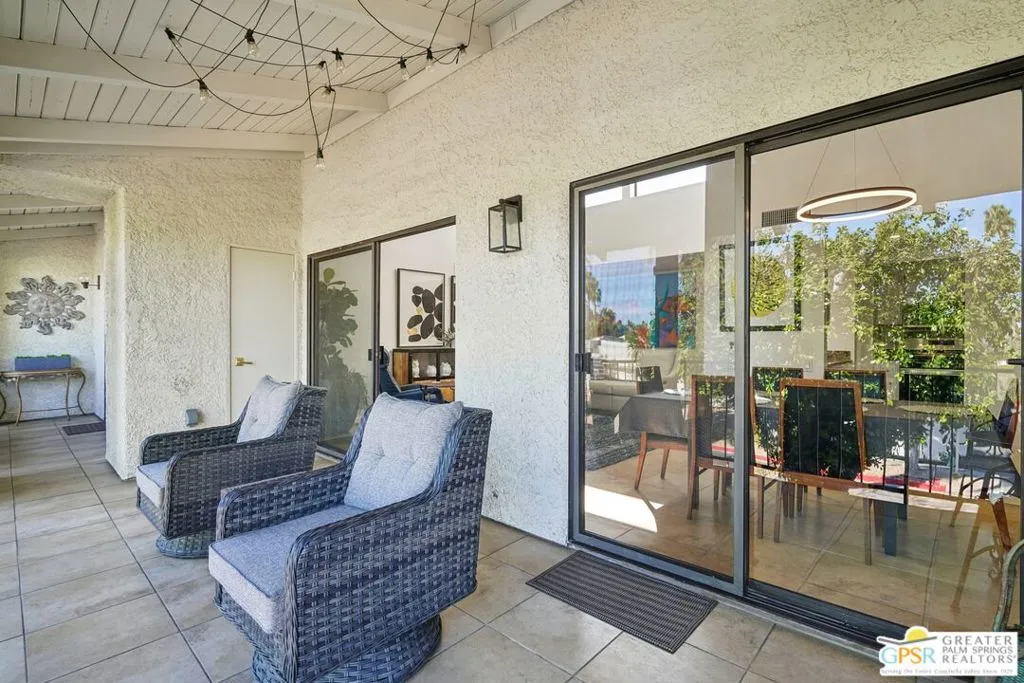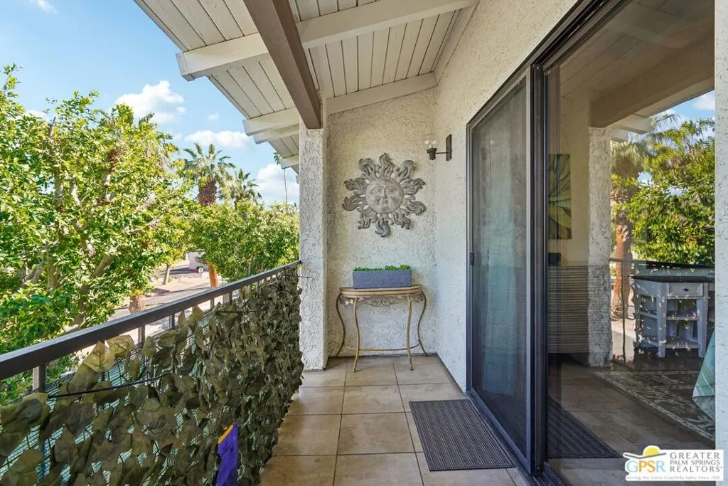 Welcome to Rancho La Paz Condominiums in Deepwell and across E Palm Canyon from Smoketree Shopping Center. The Smart Floorplan features Two Ensuite Bedrooms at opposite ends of the Great Room. Granite Counters and New Stainless Appliances adorn the kitchen. High Cathedral Ceilings with Clerestory Windows create an airy, open feel flooding the Great Room and Dining Area with abundant natural light. Recently Painted throughout. Experience the endless treetop views from within the Private Balcony Patio, which extends the full width, and is accessed from the Living Area and Primary Suite. Enjoy 3 Pools/Spas, Tennis Courts, Pickle Ball Court Dog Park and beautifull well maintained grounds. Dedicated covered parking. Walkable neighborhood close to Koffi, Elmers, Smoke Tree shopping center. Easy access to public transportation.