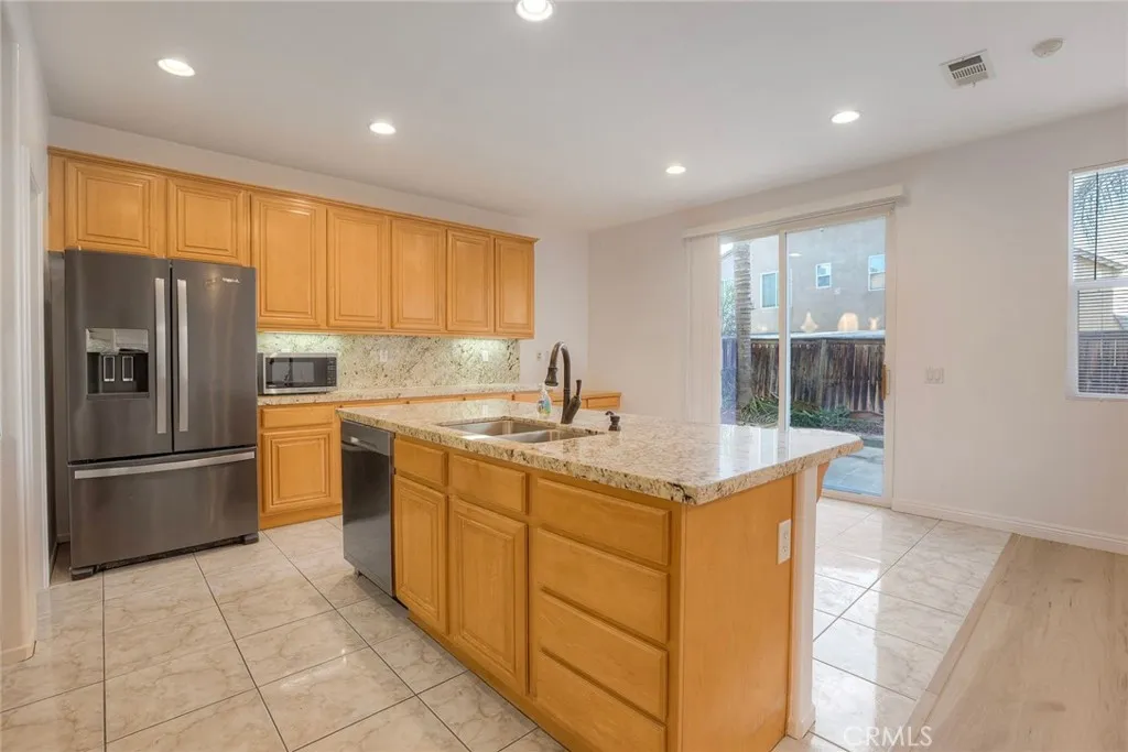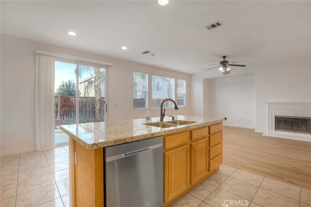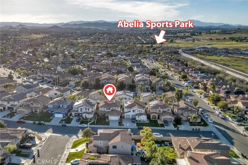 Like-new interior with fresh, two-tone neutral paint throughout complemented with new, warm, wood-looking waterproof Luxury Vinyl Plank flooring. Upon entry, you are greeted with a bright formal living room with two-story ceilings. A dedicated formal dining room is situated in the middle of the first level next to both the living and family rooms. The kitchen offers a large footprint with ample counter space, storage, a walk-in pantry, center island with sink and breakfast bar, and floor space for a kitchen table. The family room, placed next to the kitchen is placed at the back of the home and has the fireplace as the focal point. There are two bedrooms that share a bath on the main level. Upstairs the open loft offers an additional living space for a game room, study area, workout area, tv room, craft room, the choices are endless. The primary suite is large enough to have a King-sized bedroom set with end tables and dressers. Two closets provide more privacy for dual occupants who get ready at the same time. Beyond is the primary bathroom with soaking tub, separate shower, dual vanities and private water closet. There are two additional upstairs bedrooms that share a bathroom with two sinks, shower/tub combo and toilet. Additional storage cabinets are installed in the hallway so everything has a place. The low maintenance backyard offers a full-width patio and palm trees. Conveniently located within walking distance to Abelia Sports Park. Easy access to both I-15 and I-215, located close to grocery stores and restaurants, and a few minutes to the mall. You can get to Temecula, Murrieta, Menifee, Wildomar and Hemet all within 30 minutes. Call today for your personal tour.