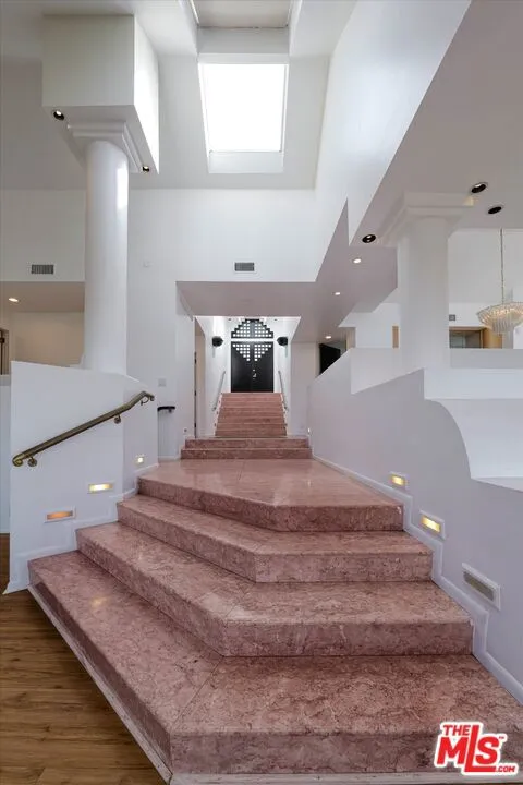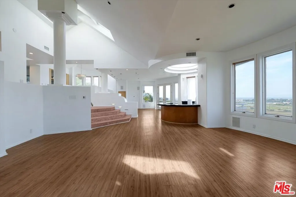 Calling all savvy investors and ambitious owner-users buyers. This stunning multi-level, sun-drenched residence with 4 bedrooms, 5.5 bathrooms, and approximately 6,881 square feet is ready for your vision and design. The home is in need of remodeling/repairs and provides a great opportunity to reimagine the space. A private elevator services multiple levels and the spectacular rooftop patio is ideal for entertaining against breathtaking ocean and city light views. Designed for both grand scale gatherings and refined everyday living, the formal living room features a fireplace, wet bar, custom built-in aquarium, and French doors opening to an expansive patio for effortless indoor-outdoor living showcasing jetliner views to the ocean. An elegant formal dining room provides the perfect setting for dinner parties and family gatherings. The chef's kitchen is thoughtfully appointed with a center island, window seat, built-in desk, and generous cabinetry. Oversized windows, French doors, and skylights throughout the home flood the interiors with natural light. The lavish primary suite is a true retreat offering a fireplace, separate sitting room with wet bar, expansive walk-in closet, and French doors leading to a patio with sweeping views. Dual spa-inspired ensuite bathrooms feature a soaking tub with fireplace and two separate showers. An expansive game and entertainment room impresses with a full bar, butler's pantry with wine room, space for a pool table and other gaming tables, and French doors opening to a patio with sweeping views. The lower level reveals a resort-style rear patio complete with built-in BBQ and spa, along with private access to the fourth bedroom featuring a wet bar and en-suite bath with sauna. Additional highlights include direct access to a two-car garage and a prime location close to trendy shopping, dining, and entertainment offering an exceptional lifestyle of luxury, comfort, and convenience. Per tax records 4BR/5BA, property functions with 4BR/5.5BA. Property has solar panels and buyer to assume solar lease.